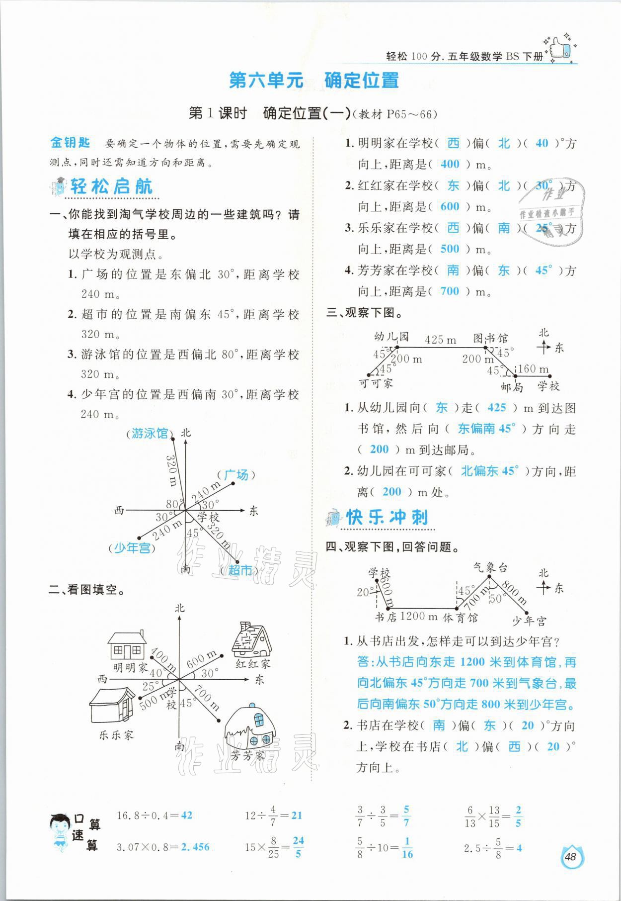 注:目前有些书本章节名称可能整理的还不是很完善,但都是按照顺序排列的,请同学们按照顺序仔细查找。练习册 2021年轻松学习100分五年级数学下册北师大版 答案主要是用来给同学们做完题方便对答案用的,请勿直接抄袭。