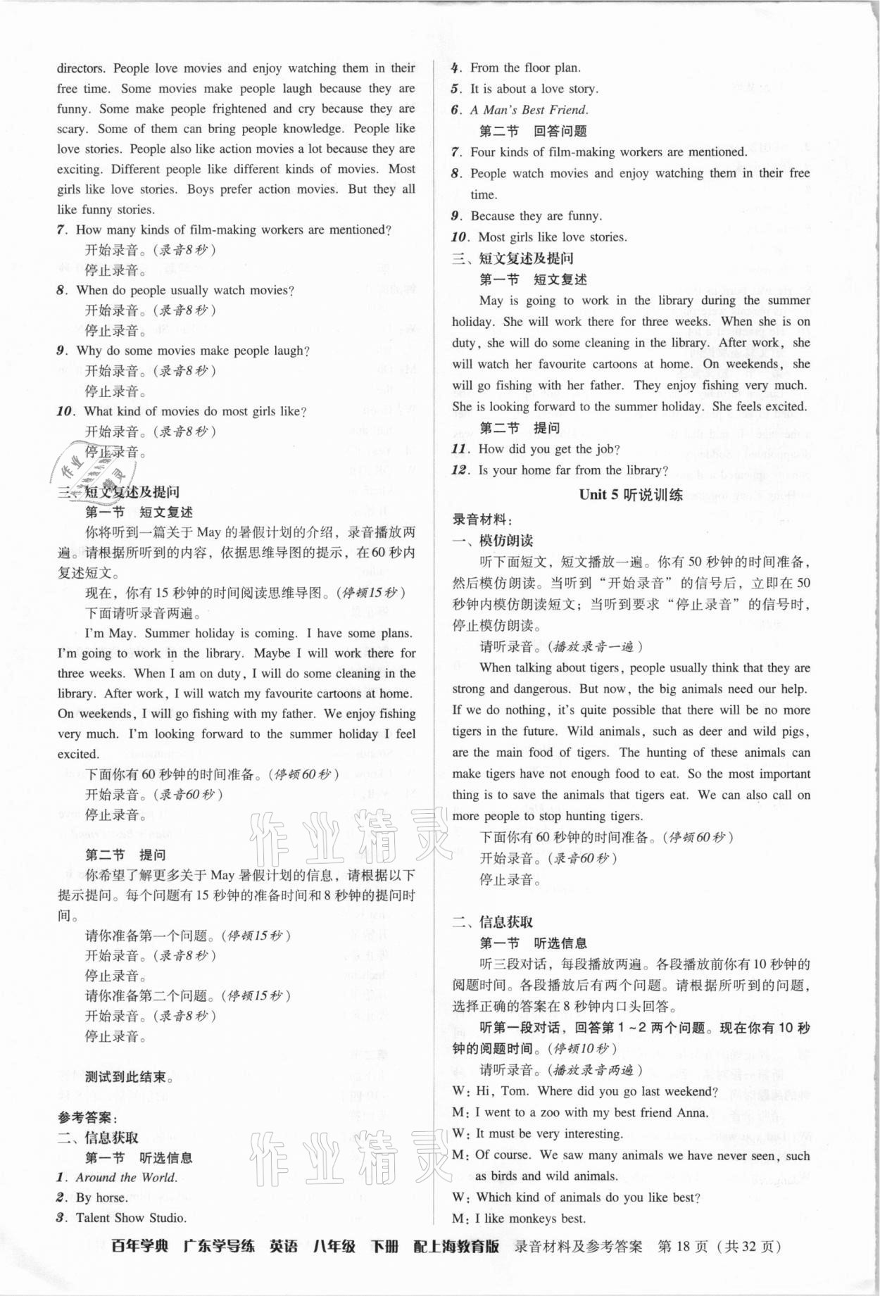 注:目前有些书本章节名称可能整理的还不是很完善,但都是按照顺序排列的,请同学们按照顺序仔细查找。练习册 2021年百年学典广东学导练八年级英语下册沪教版 答案主要是用来给同学们做完题方便对答案用的,请勿直接抄袭。