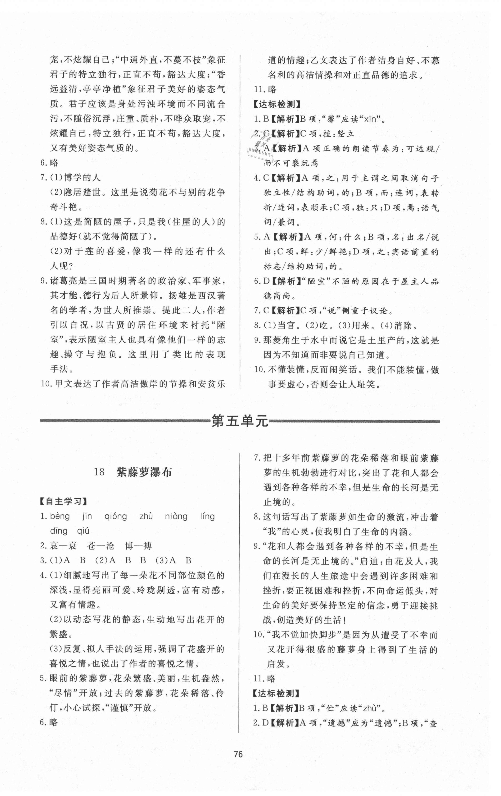 注:目前有些书本章节名称可能整理的还不是很完善,但都是按照顺序排列的,请同学们按照顺序仔细查找。练习册 2021年新课程学习与检测七年级语文下册人教版 答案主要是用来给同学们做完题方便对答案用的,请勿直接抄袭。