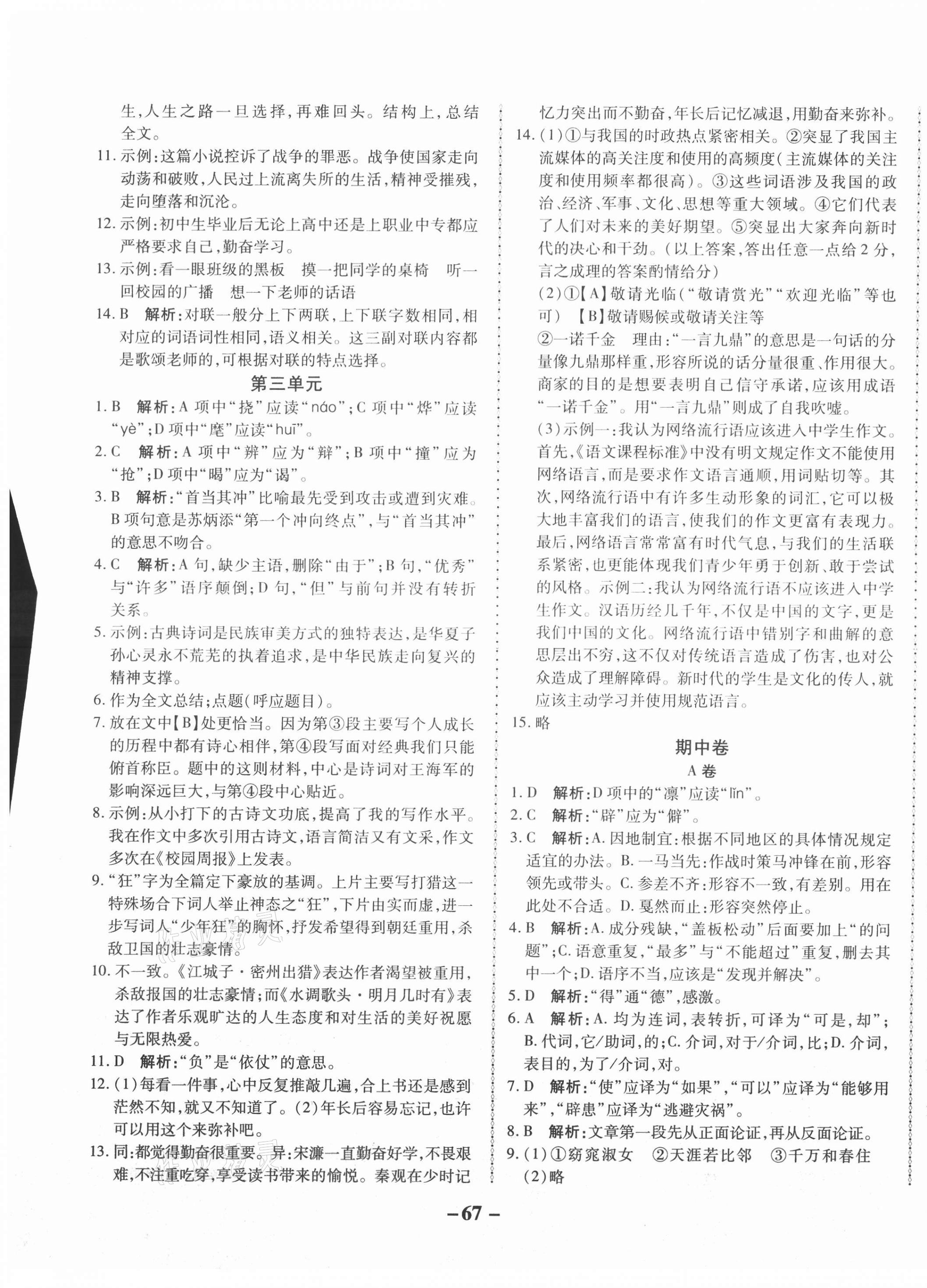 注:目前有些书本章节名称可能整理的还不是很完善,但都是按照顺序排列的,请同学们按照顺序仔细查找。练习册 2021年天府达标测试卷九年级语文下册 答案主要是用来给同学们做完题方便对答案用的,请勿直接抄袭。