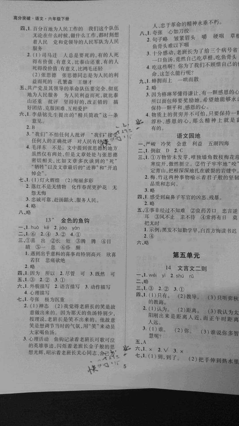 注:目前有些书本章节名称可能整理的还不是很完善,但都是按照顺序排列的,请同学们按照顺序仔细查找。练习册 2021年高分突破课课练与单元测试六年级语文下册人教版 答案主要是用来给同学们做完题方便对答案用的,请勿直接抄袭。