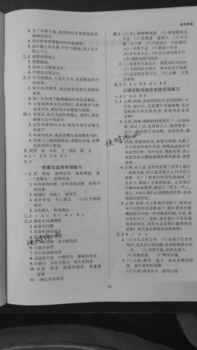 注:目前有些书本章节名称可能整理的还不是很完善,但都是按照顺序排列的,请同学们按照顺序仔细查找。练习册 2021年高分突破课课练与单元测试六年级语文下册人教版 答案主要是用来给同学们做完题方便对答案用的,请勿直接抄袭。