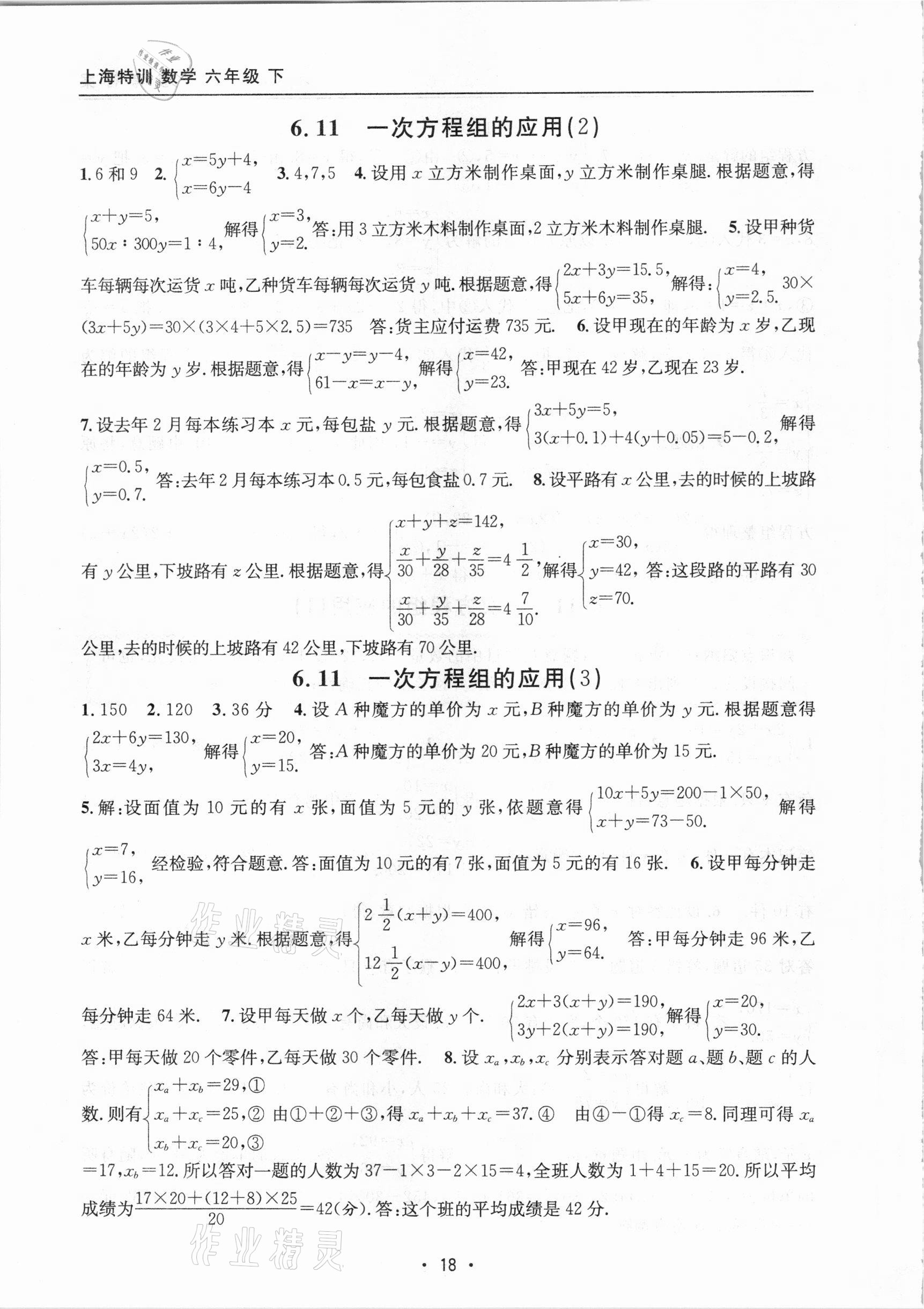 注:目前有些书本章节名称可能整理的还不是很完善,但都是按照顺序排列的,请同学们按照顺序仔细查找。练习册 2021年上海特训六年级数学下册沪教版54制 答案主要是用来给同学们做完题方便对答案用的,请勿直接抄袭。