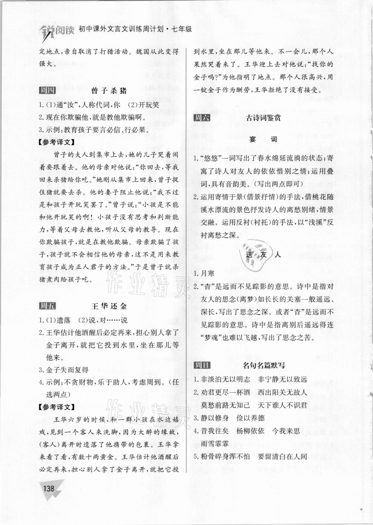 注:目前有些书本章节名称可能整理的还不是很完善,但都是按照顺序排列的,请同学们按照顺序仔细查找。练习册 2021年初中课外文言文训练周计划七年级人教版 答案主要是用来给同学们做完题方便对答案用的,请勿直接抄袭。