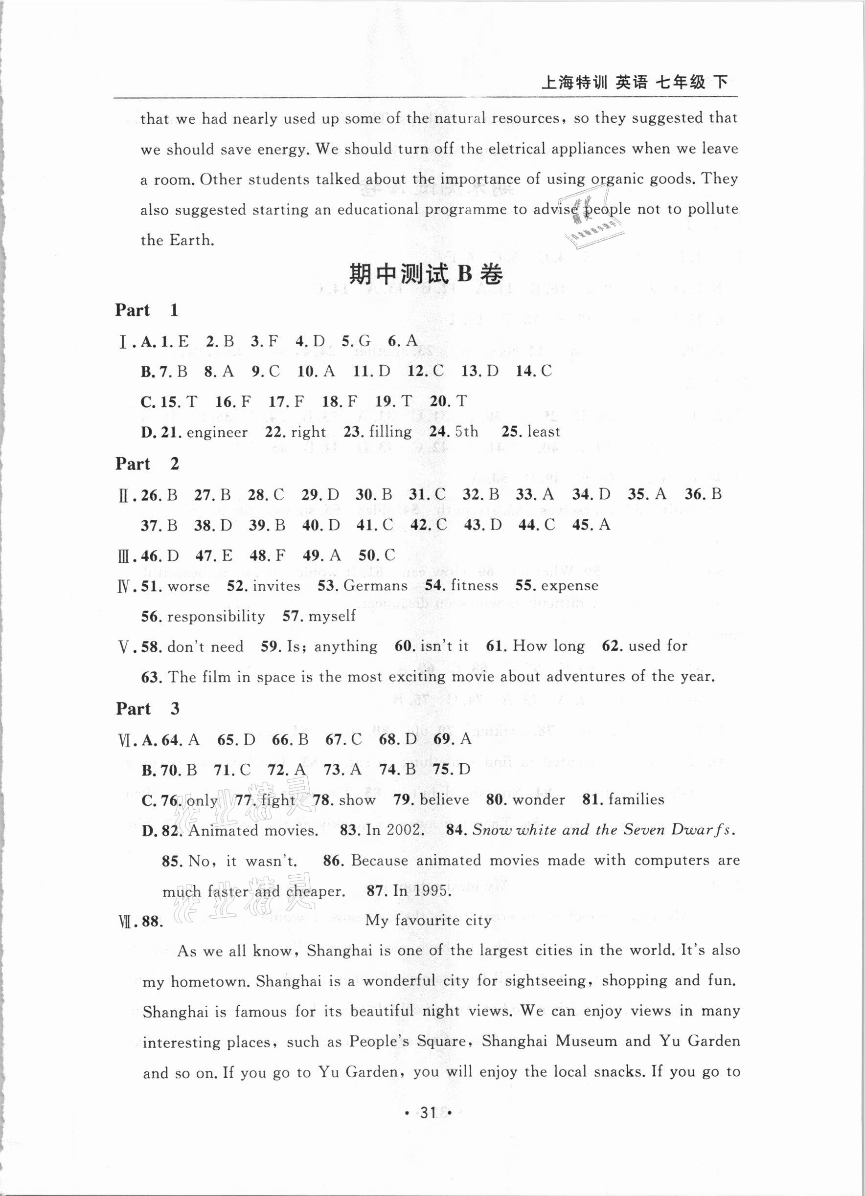 注:目前有些书本章节名称可能整理的还不是很完善,但都是按照顺序排列的,请同学们按照顺序仔细查找。练习册 2021年上海特训七年级英语下册沪教版 答案主要是用来给同学们做完题方便对答案用的,请勿直接抄袭。