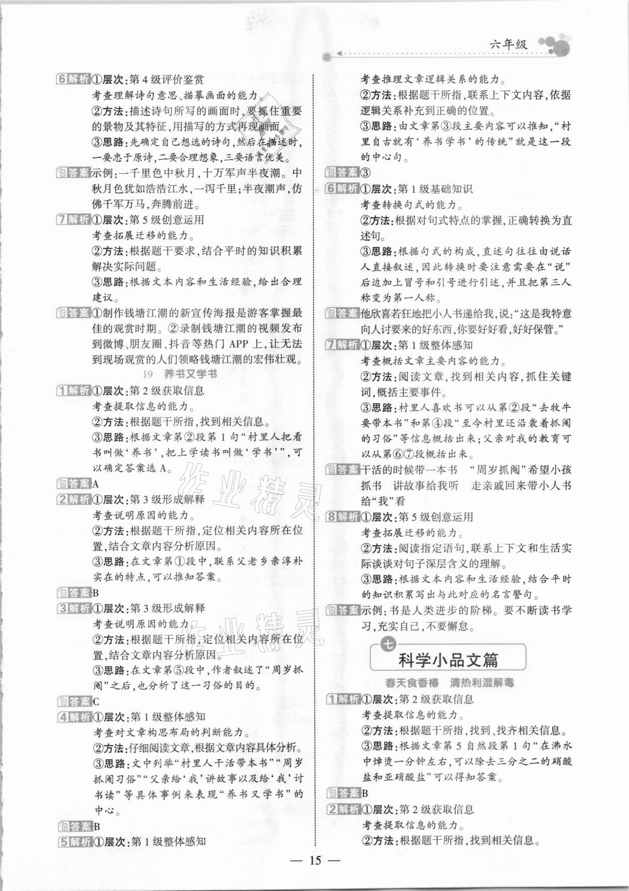 注:目前有些书本章节名称可能整理的还不是很完善,但都是按照顺序排列的,请同学们按照顺序仔细查找。练习册 2021年全优阅读派六年级B版人教版福建专版 答案主要是用来给同学们做完题方便对答案用的,请勿直接抄袭。