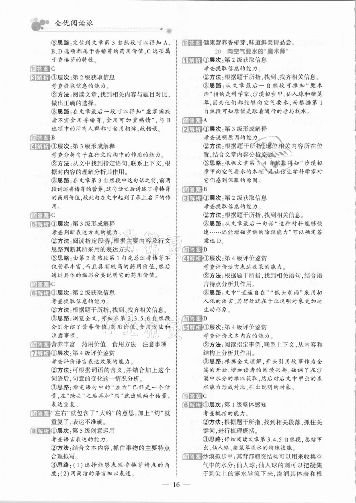 注:目前有些书本章节名称可能整理的还不是很完善,但都是按照顺序排列的,请同学们按照顺序仔细查找。练习册 2021年全优阅读派六年级B版人教版福建专版 答案主要是用来给同学们做完题方便对答案用的,请勿直接抄袭。