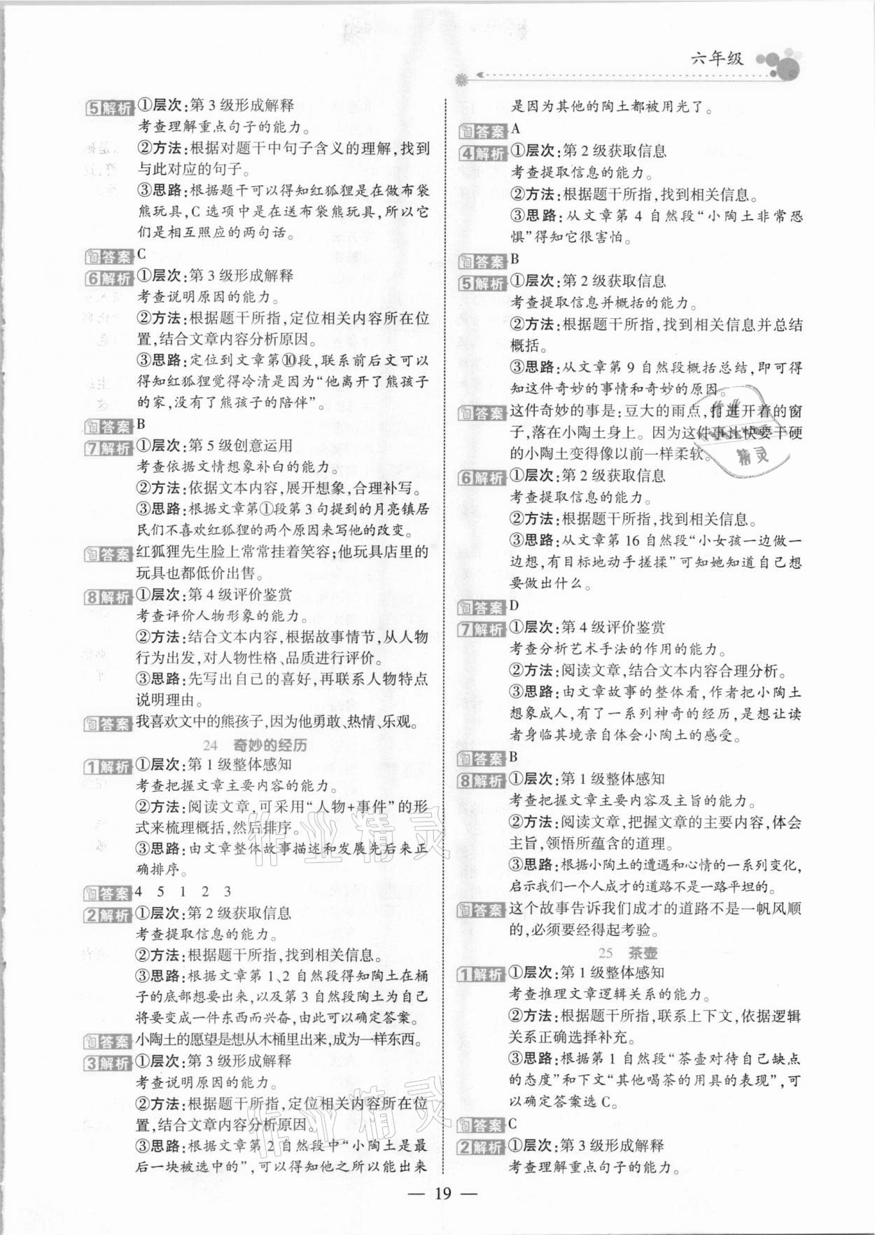 注:目前有些书本章节名称可能整理的还不是很完善,但都是按照顺序排列的,请同学们按照顺序仔细查找。练习册 2021年全优阅读派六年级B版人教版福建专版 答案主要是用来给同学们做完题方便对答案用的,请勿直接抄袭。