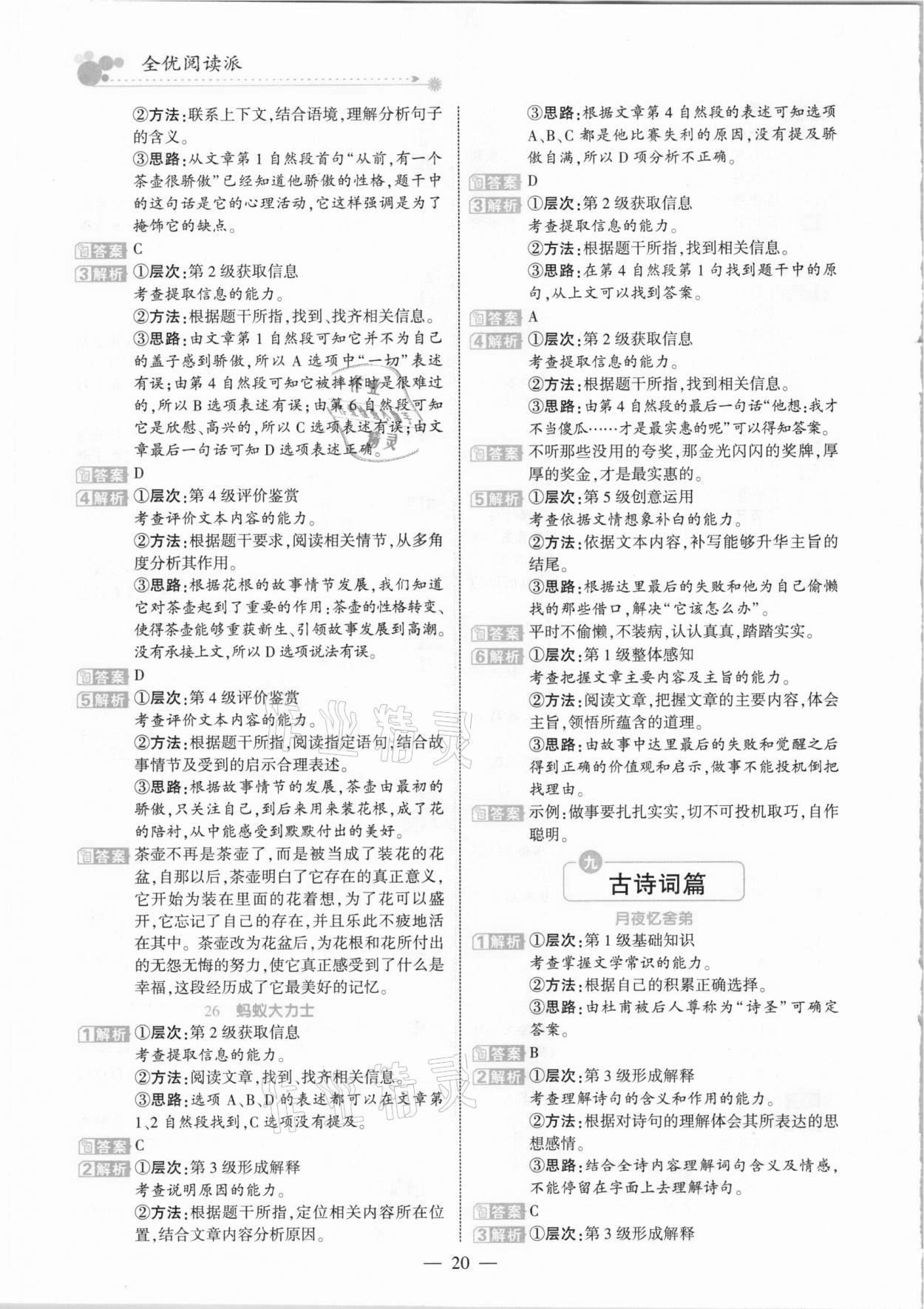注:目前有些书本章节名称可能整理的还不是很完善,但都是按照顺序排列的,请同学们按照顺序仔细查找。练习册 2021年全优阅读派六年级B版人教版福建专版 答案主要是用来给同学们做完题方便对答案用的,请勿直接抄袭。