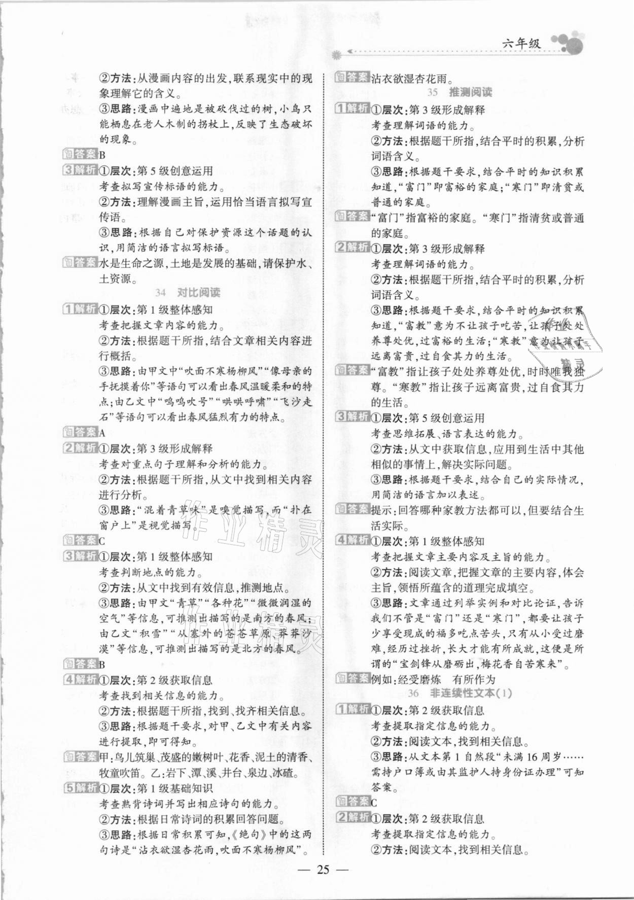 注:目前有些书本章节名称可能整理的还不是很完善,但都是按照顺序排列的,请同学们按照顺序仔细查找。练习册 2021年全优阅读派六年级B版人教版福建专版 答案主要是用来给同学们做完题方便对答案用的,请勿直接抄袭。
