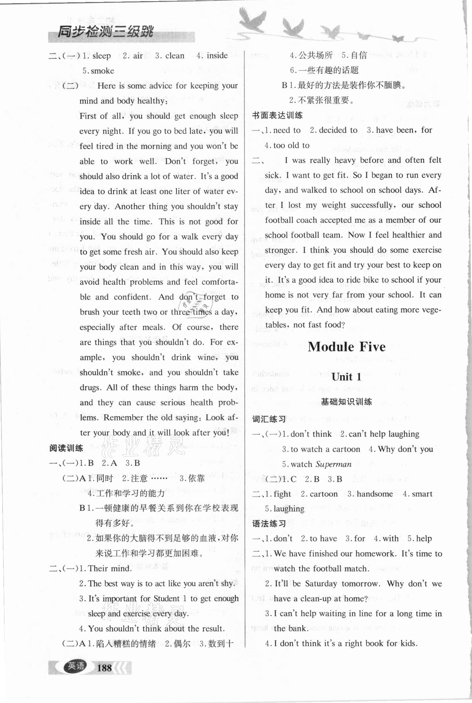注:目前有些书本章节名称可能整理的还不是很完善,但都是按照顺序排列的,请同学们按照顺序仔细查找。练习册 2021年同步检测三级跳初二英语下册人教版 答案主要是用来给同学们做完题方便对答案用的,请勿直接抄袭。