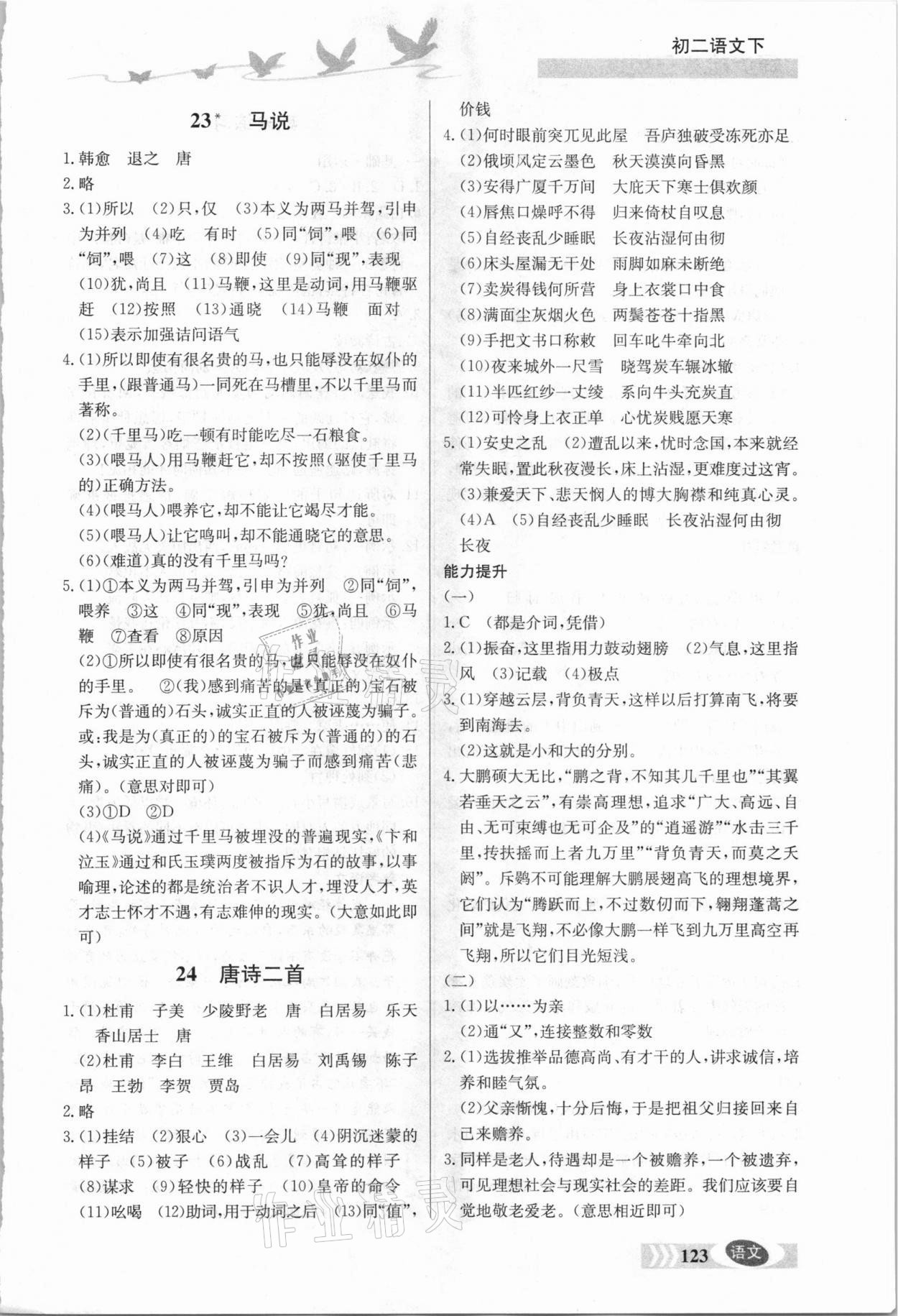 注:目前有些书本章节名称可能整理的还不是很完善,但都是按照顺序排列的,请同学们按照顺序仔细查找。练习册 2021年同步检测三级跳初二语文下册人教版 答案主要是用来给同学们做完题方便对答案用的,请勿直接抄袭。