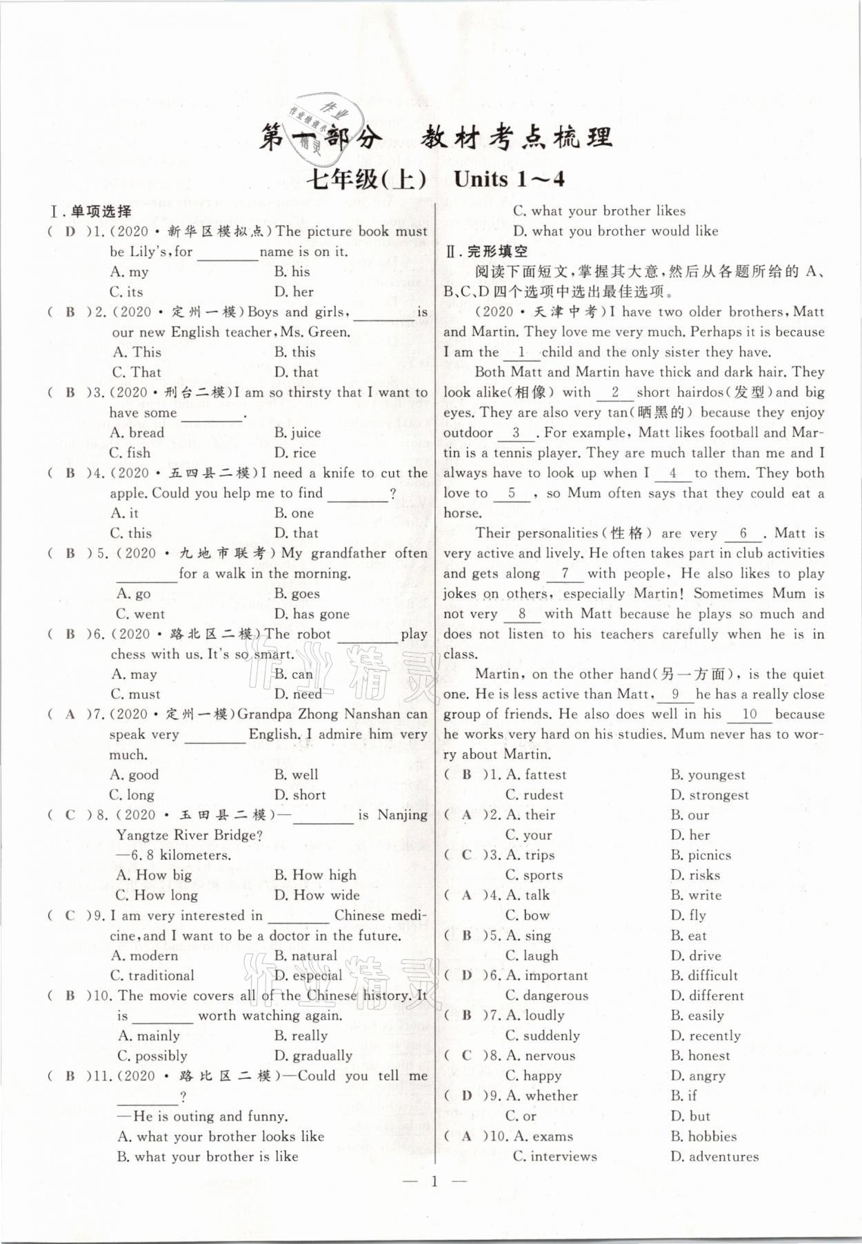 - 参考答案第20页