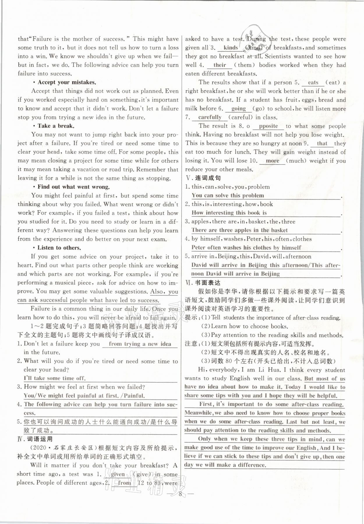 - 参考答案第8页
