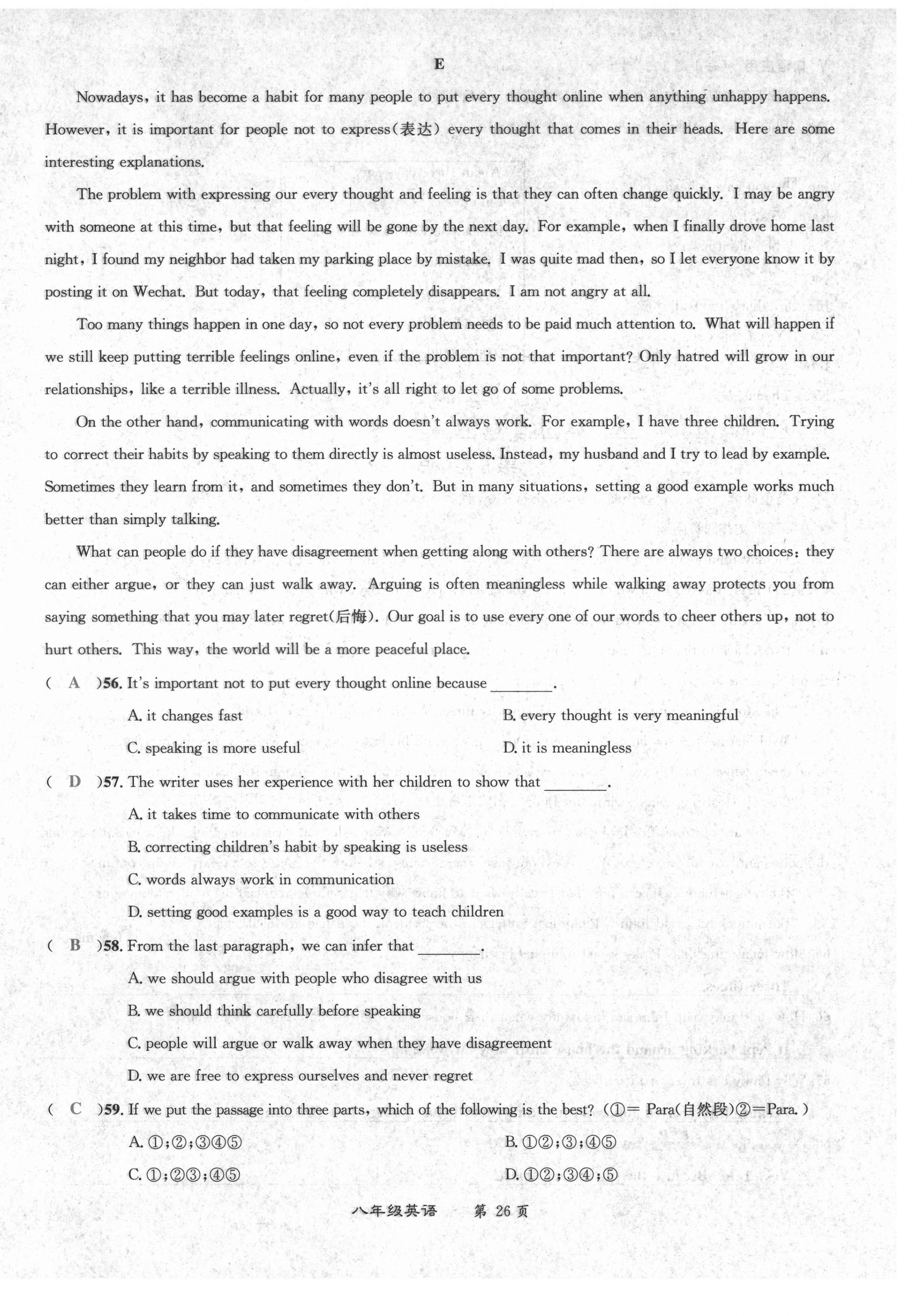 注:目前有些书本章节名称可能整理的还不是很完善,但都是按照顺序排列的,请同学们按照顺序仔细查找。练习册 2021年百所名校精点试题八年级英语下册人教版 答案主要是用来给同学们做完题方便对答案用的,请勿直接抄袭。