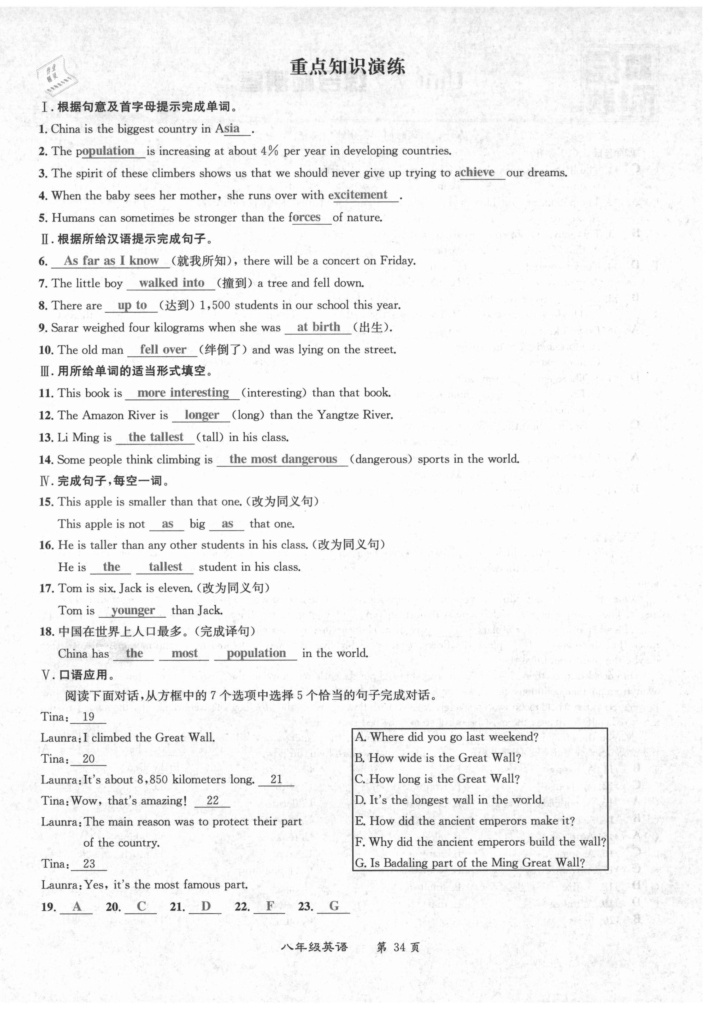 注:目前有些书本章节名称可能整理的还不是很完善,但都是按照顺序排列的,请同学们按照顺序仔细查找。练习册 2021年百所名校精点试题八年级英语下册人教版 答案主要是用来给同学们做完题方便对答案用的,请勿直接抄袭。