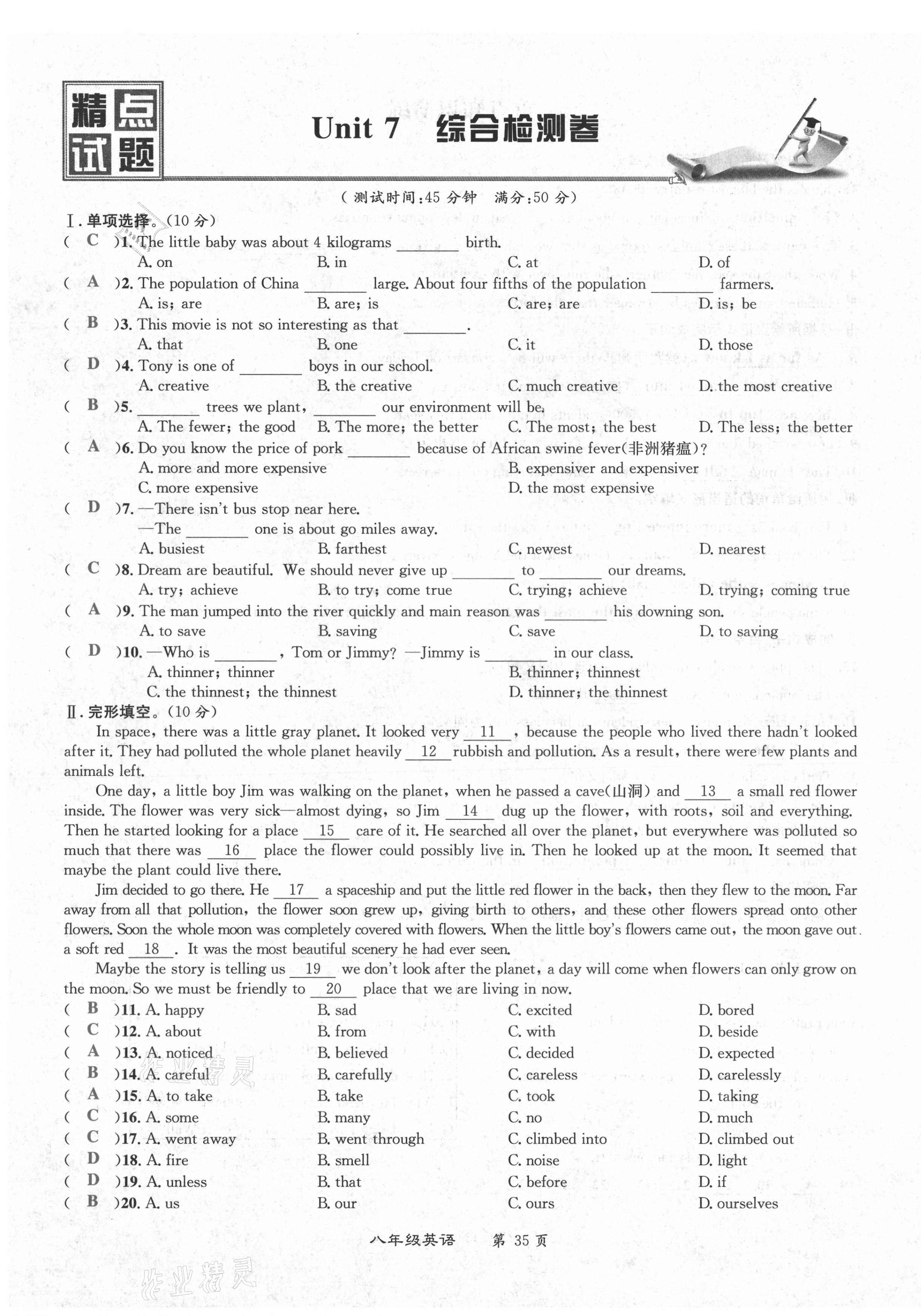 注:目前有些书本章节名称可能整理的还不是很完善,但都是按照顺序排列的,请同学们按照顺序仔细查找。练习册 2021年百所名校精点试题八年级英语下册人教版 答案主要是用来给同学们做完题方便对答案用的,请勿直接抄袭。