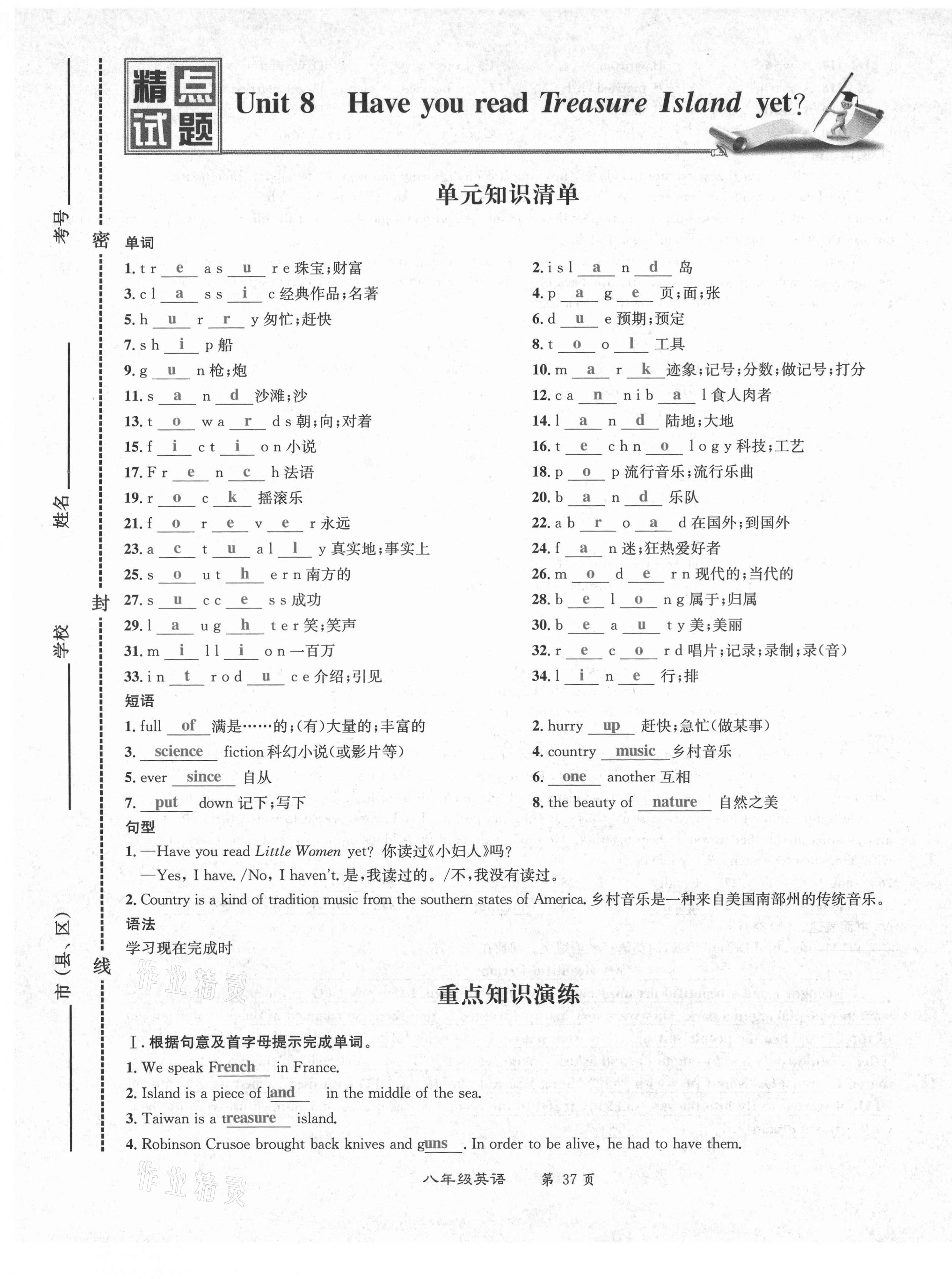 注:目前有些书本章节名称可能整理的还不是很完善,但都是按照顺序排列的,请同学们按照顺序仔细查找。练习册 2021年百所名校精点试题八年级英语下册人教版 答案主要是用来给同学们做完题方便对答案用的,请勿直接抄袭。