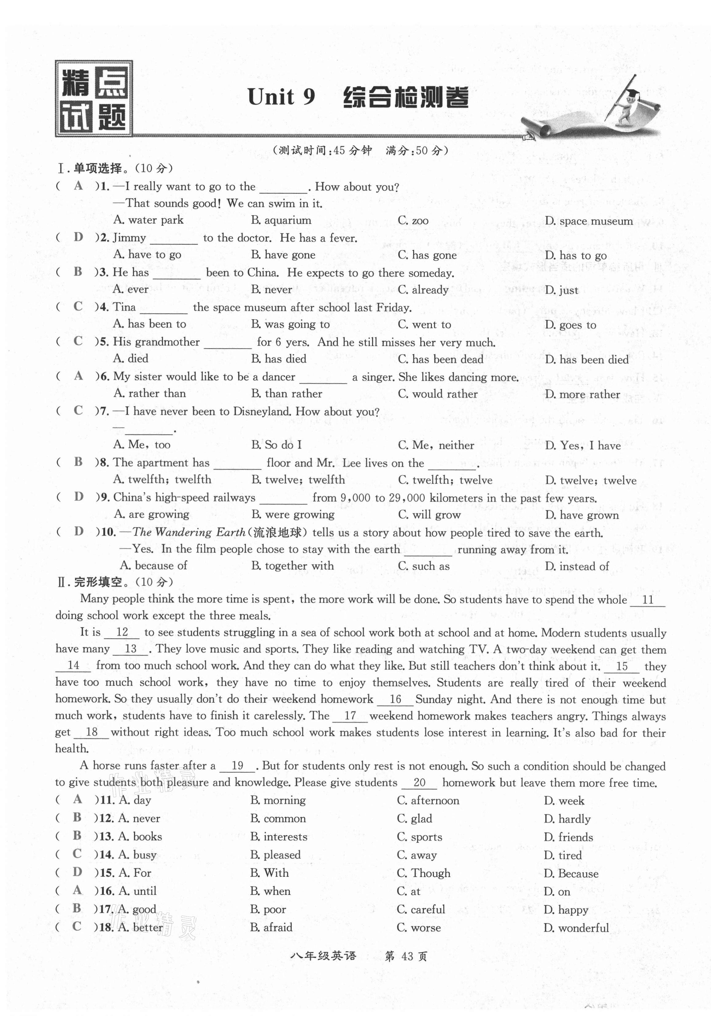 注:目前有些书本章节名称可能整理的还不是很完善,但都是按照顺序排列的,请同学们按照顺序仔细查找。练习册 2021年百所名校精点试题八年级英语下册人教版 答案主要是用来给同学们做完题方便对答案用的,请勿直接抄袭。