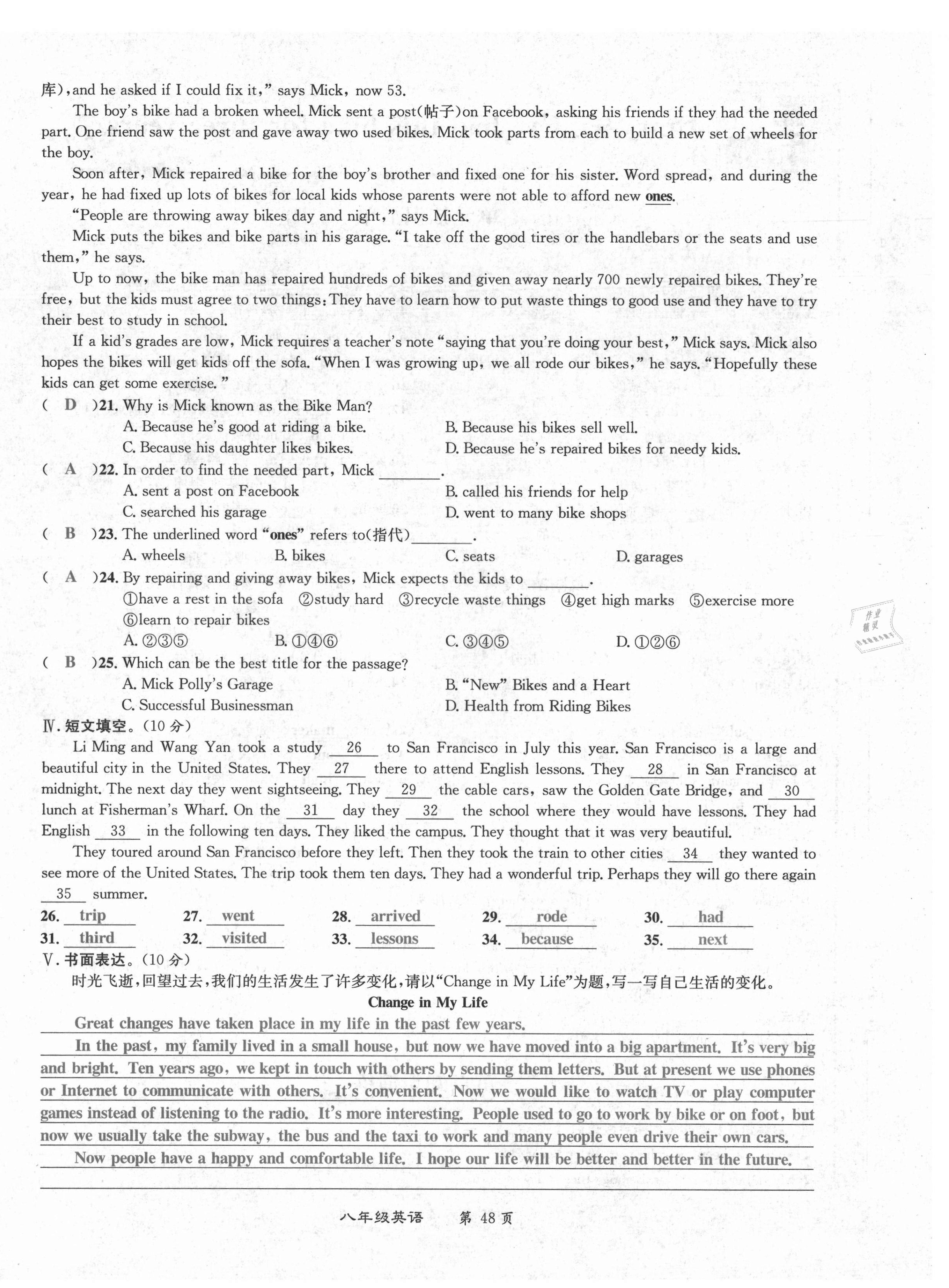 注:目前有些书本章节名称可能整理的还不是很完善,但都是按照顺序排列的,请同学们按照顺序仔细查找。练习册 2021年百所名校精点试题八年级英语下册人教版 答案主要是用来给同学们做完题方便对答案用的,请勿直接抄袭。