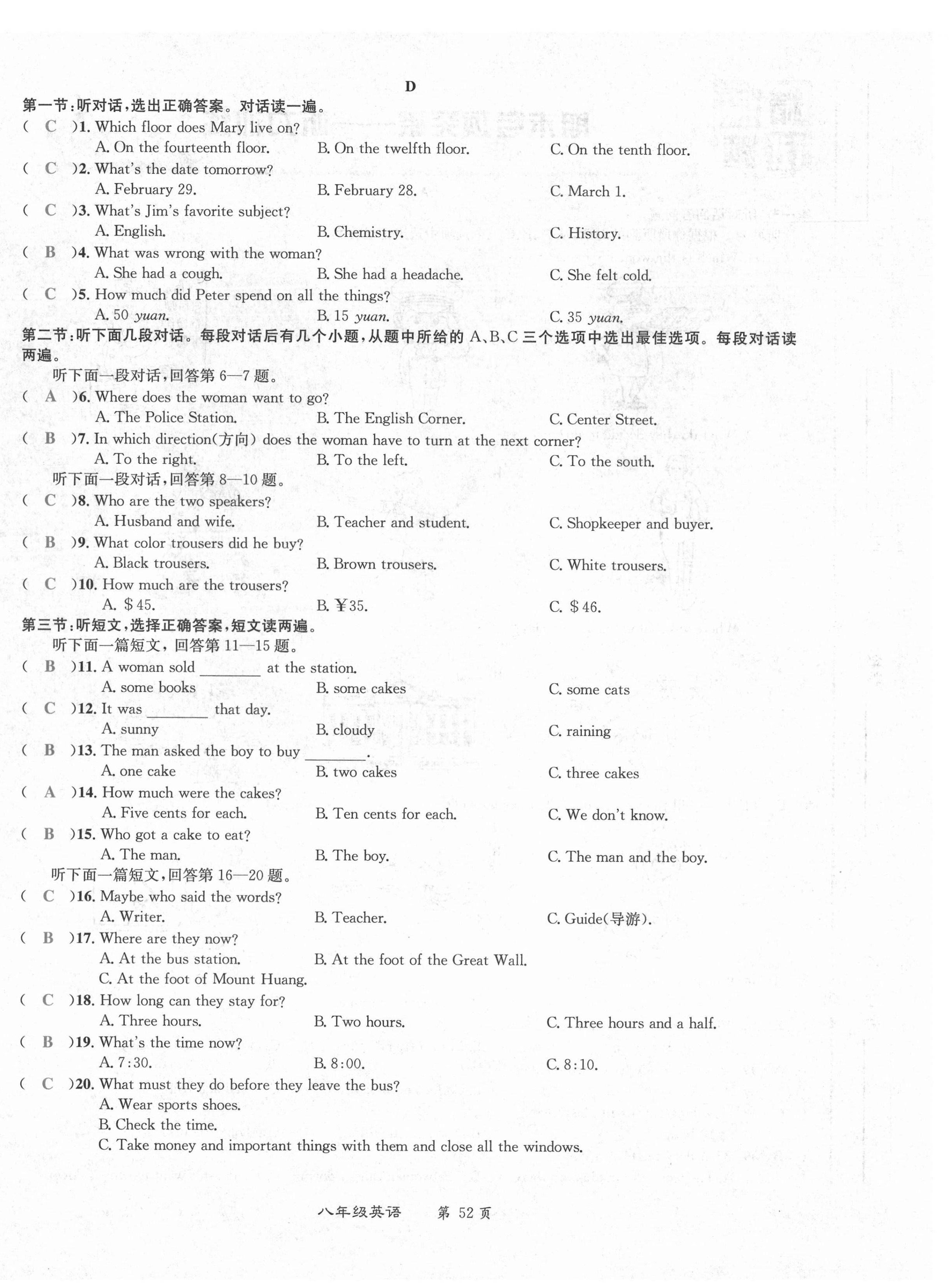 注:目前有些书本章节名称可能整理的还不是很完善,但都是按照顺序排列的,请同学们按照顺序仔细查找。练习册 2021年百所名校精点试题八年级英语下册人教版 答案主要是用来给同学们做完题方便对答案用的,请勿直接抄袭。