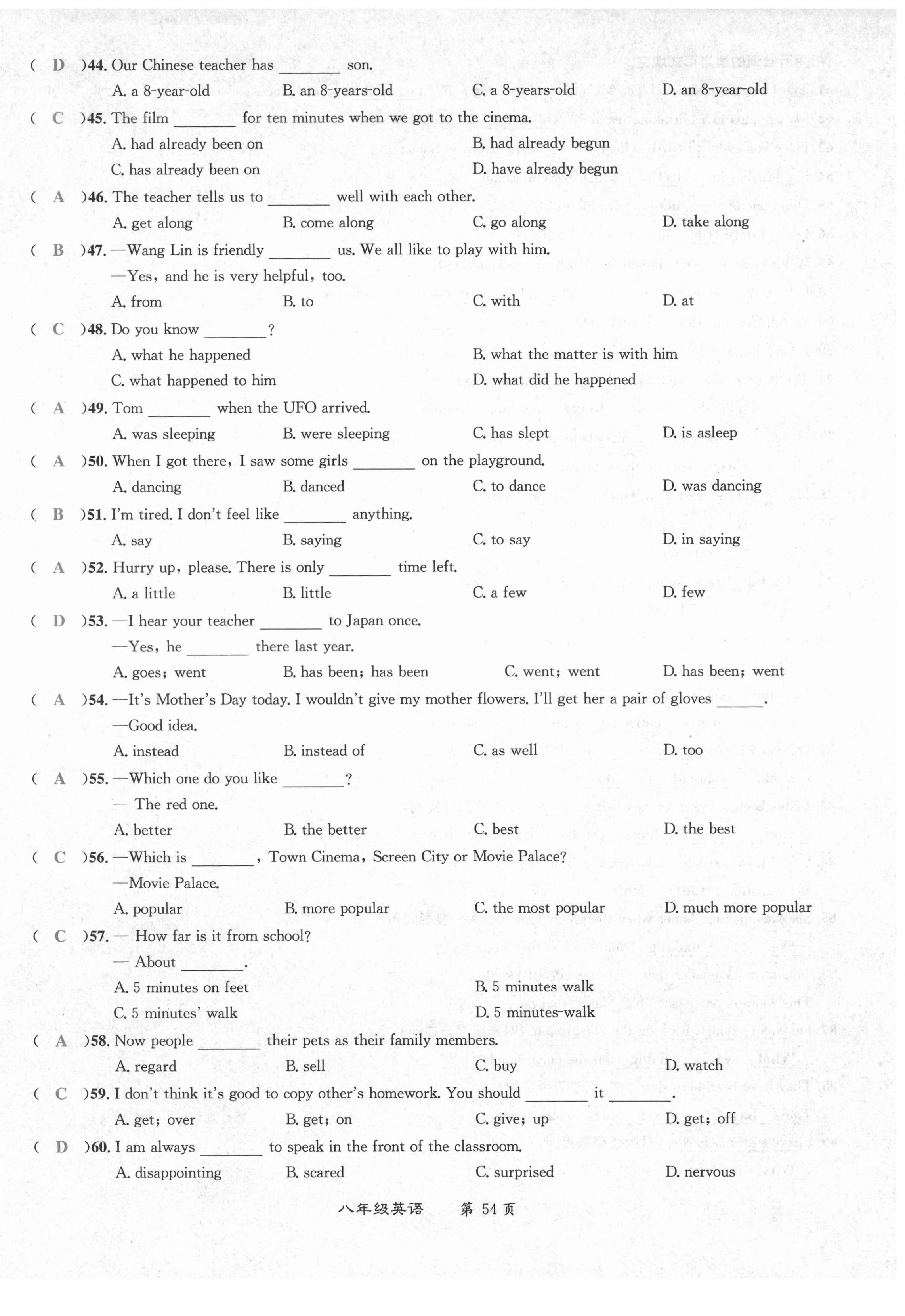 注:目前有些书本章节名称可能整理的还不是很完善,但都是按照顺序排列的,请同学们按照顺序仔细查找。练习册 2021年百所名校精点试题八年级英语下册人教版 答案主要是用来给同学们做完题方便对答案用的,请勿直接抄袭。