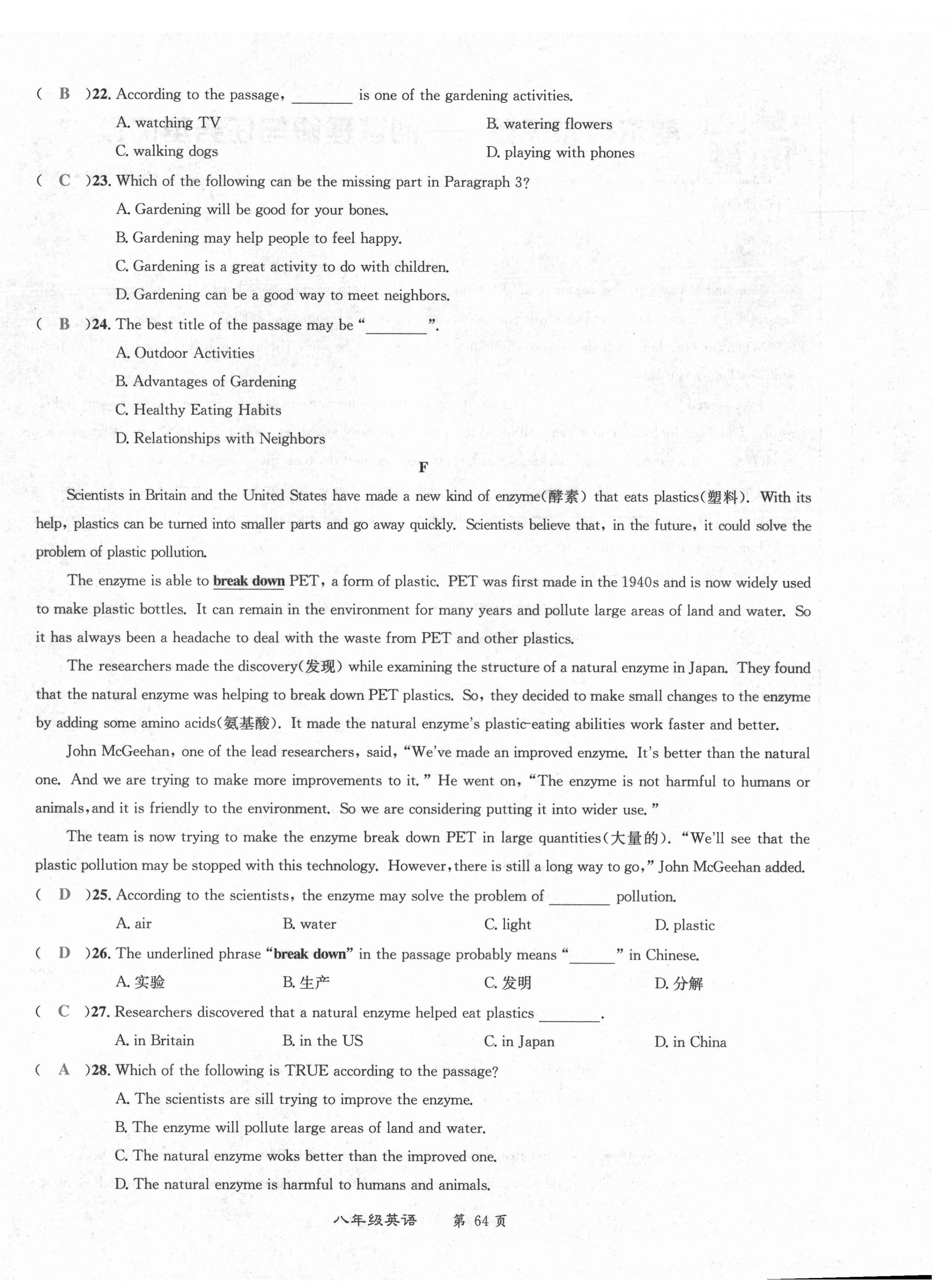 注:目前有些书本章节名称可能整理的还不是很完善,但都是按照顺序排列的,请同学们按照顺序仔细查找。练习册 2021年百所名校精点试题八年级英语下册人教版 答案主要是用来给同学们做完题方便对答案用的,请勿直接抄袭。