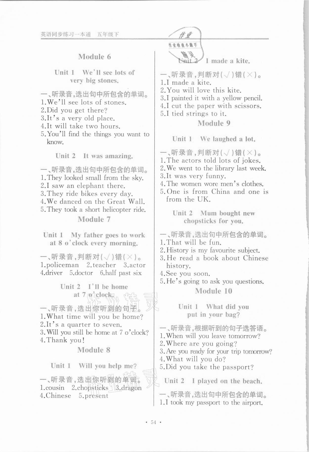 《2021年英语同步练习一本通五年级下册外研版1年级起》