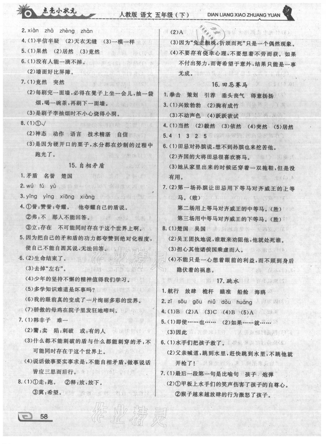 注:目前有些书本章节名称可能整理的还不是很完善,但都是按照顺序排列的,请同学们按照顺序仔细查找。练习册 2021年点亮小状元五年级语文下册人教版内蒙古人民出版社 答案主要是用来给同学们做完题方便对答案用的,请勿直接抄袭。