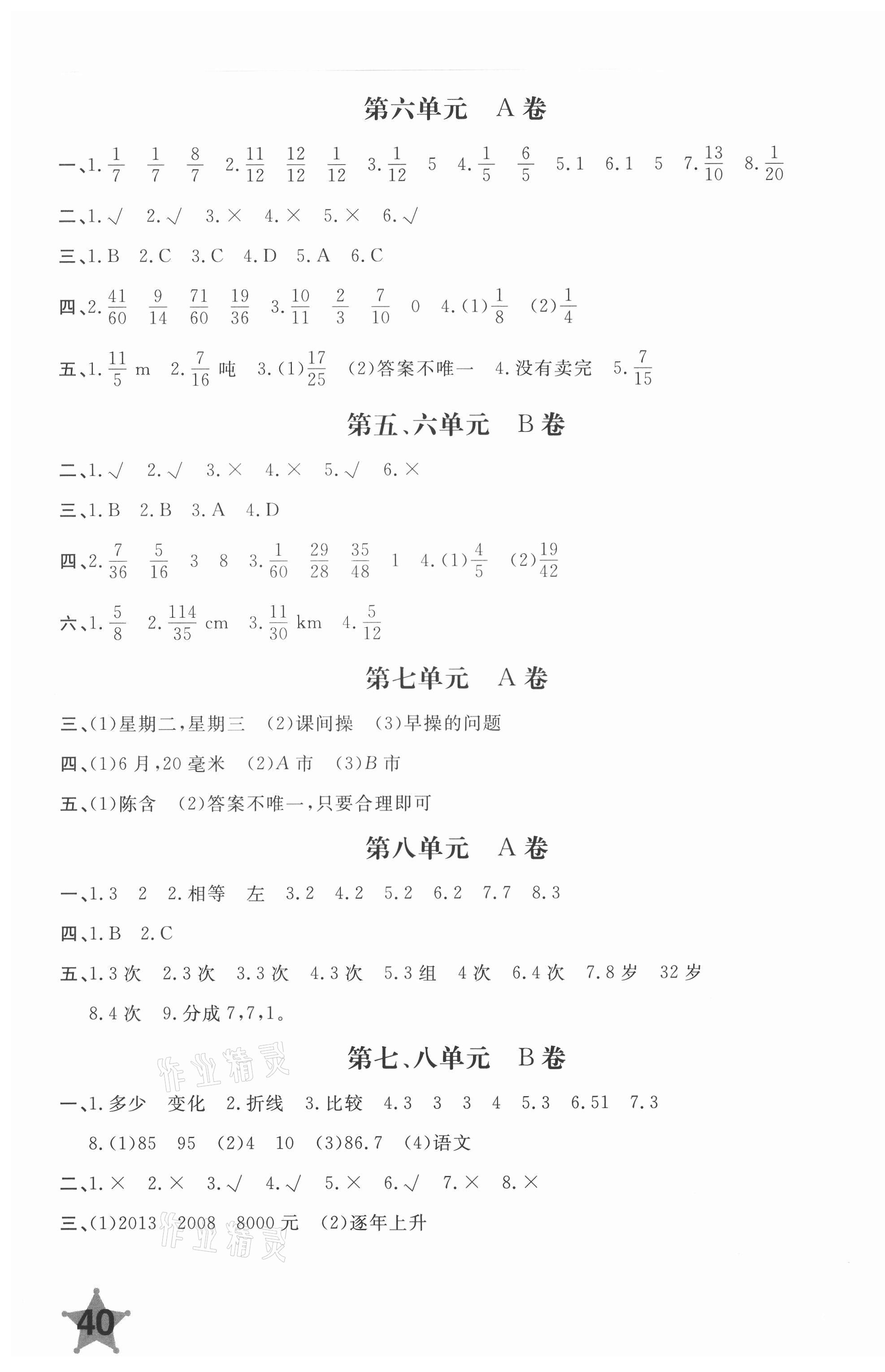 注:目前有些书本章节名称可能整理的还不是很完善,但都是按照顺序排列的,请同学们按照顺序仔细查找。练习册 2021年新课堂AB卷单元测试五年级数学下册人教版 答案主要是用来给同学们做完题方便对答案用的,请勿直接抄袭。