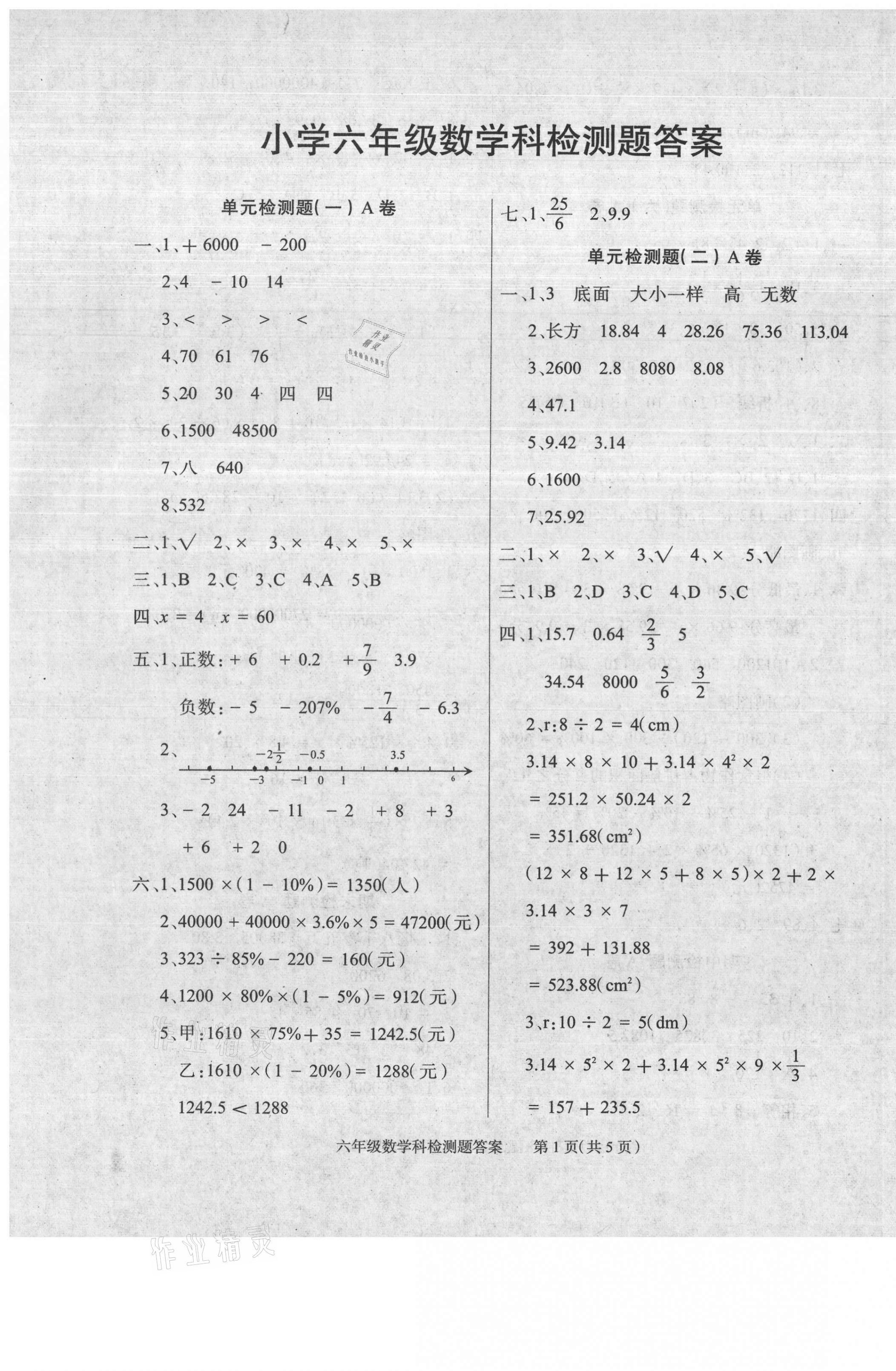 2021年点亮小状元六年级数学下册人教版内蒙古人民出版社