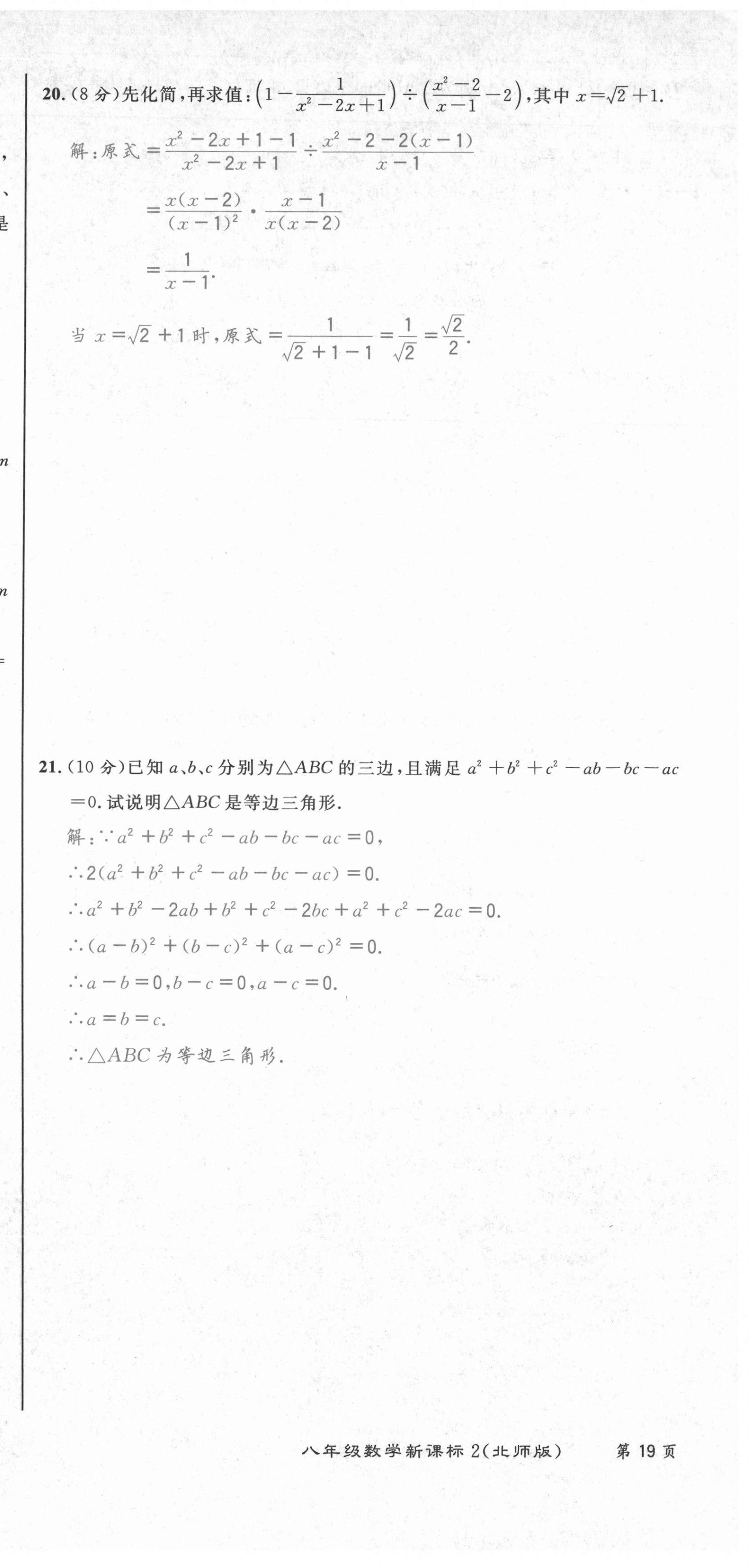 2021年百所名校精点试题八年级数学下册北师大版