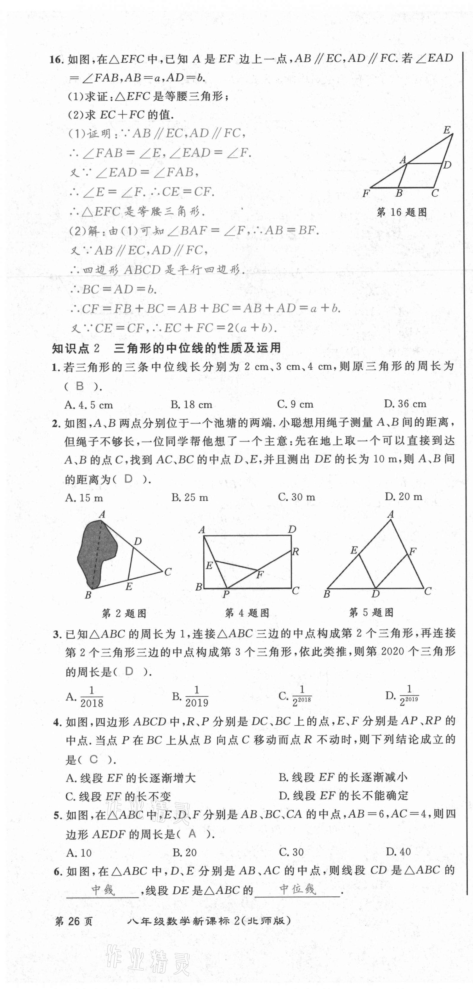 注:目前有些书本章节名称可能整理的还不是很完善,但都是按照顺序排列的,请同学们按照顺序仔细查找。练习册 2021年百所名校精点试题八年级数学下册北师大版 答案主要是用来给同学们做完题方便对答案用的,请勿直接抄袭。