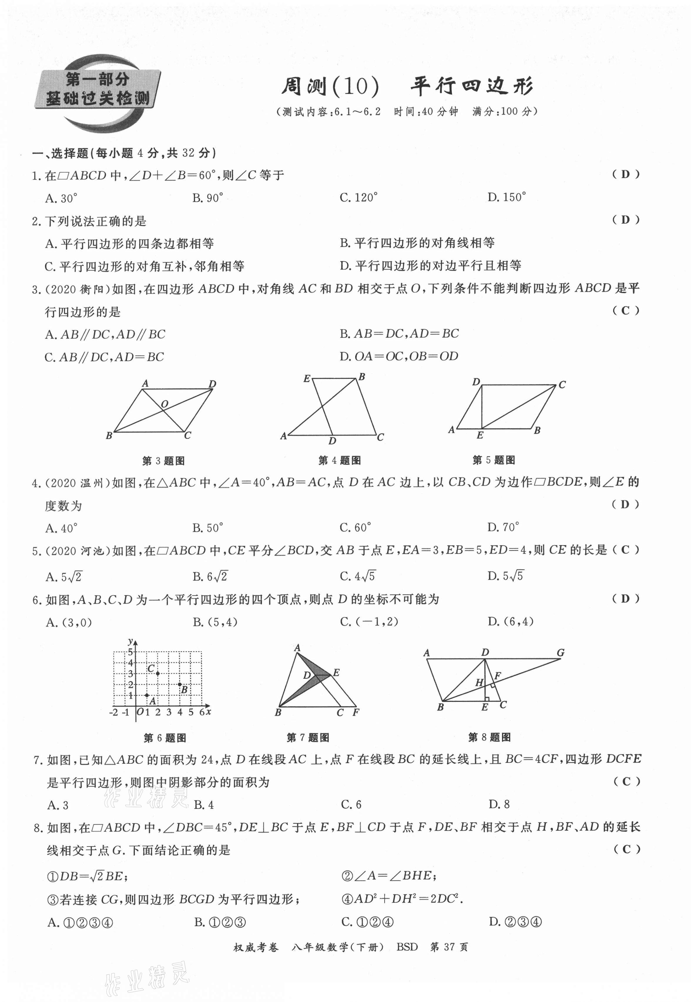 注:目前有些书本章节名称可能整理的还不是很完善,但都是按照顺序排列的,请同学们按照顺序仔细查找。练习册 2021年权威考卷八年级数学下册北师大版 答案主要是用来给同学们做完题方便对答案用的,请勿直接抄袭。