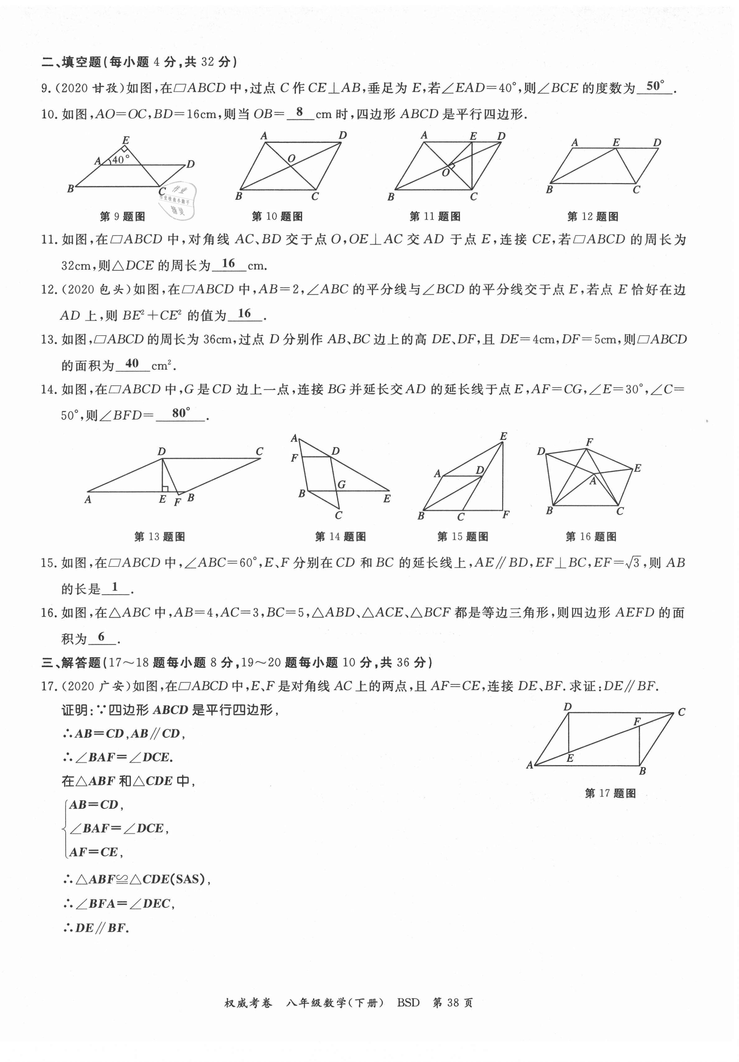 注:目前有些书本章节名称可能整理的还不是很完善,但都是按照顺序排列的,请同学们按照顺序仔细查找。练习册 2021年权威考卷八年级数学下册北师大版 答案主要是用来给同学们做完题方便对答案用的,请勿直接抄袭。