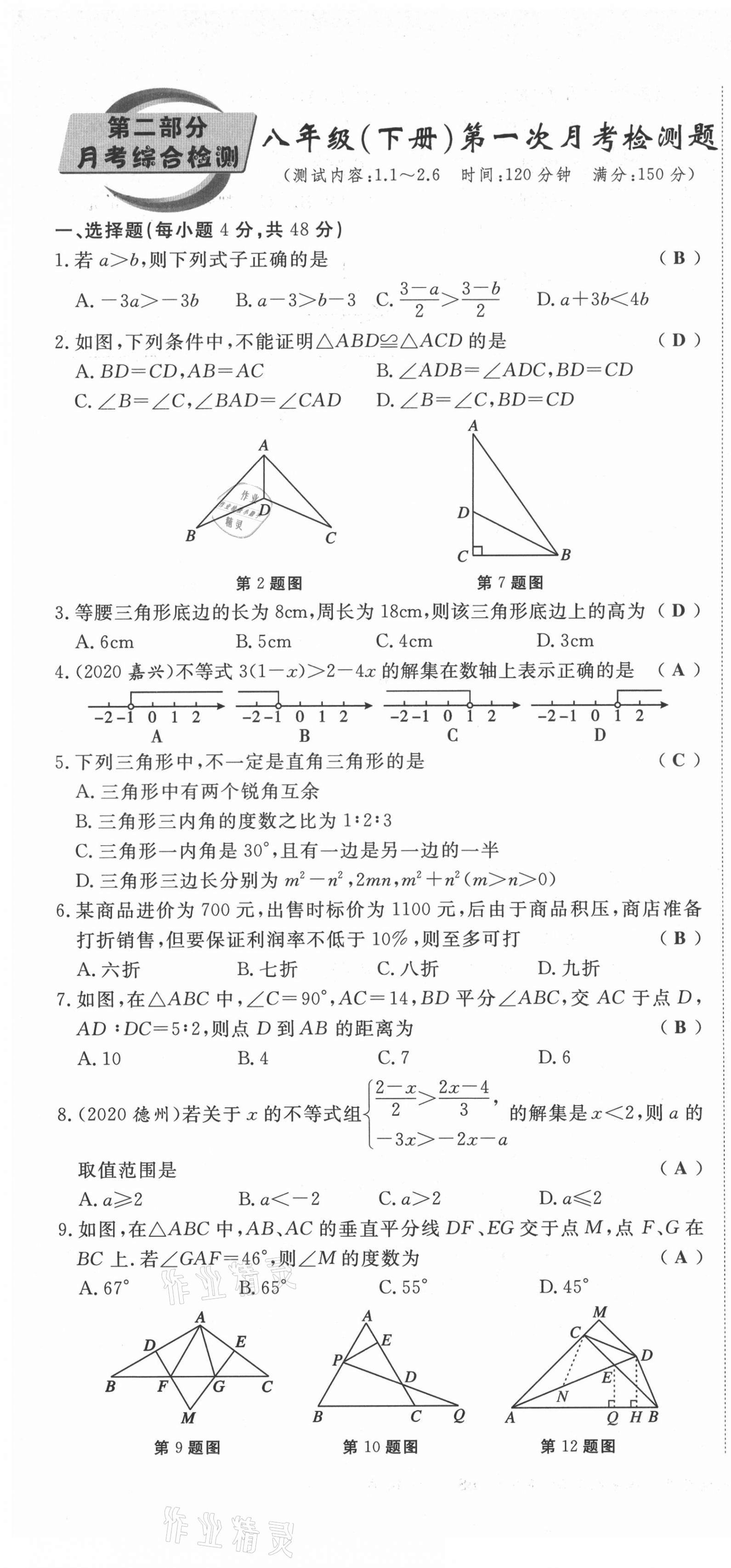 注:目前有些书本章节名称可能整理的还不是很完善,但都是按照顺序排列的,请同学们按照顺序仔细查找。练习册 2021年权威考卷八年级数学下册北师大版 答案主要是用来给同学们做完题方便对答案用的,请勿直接抄袭。