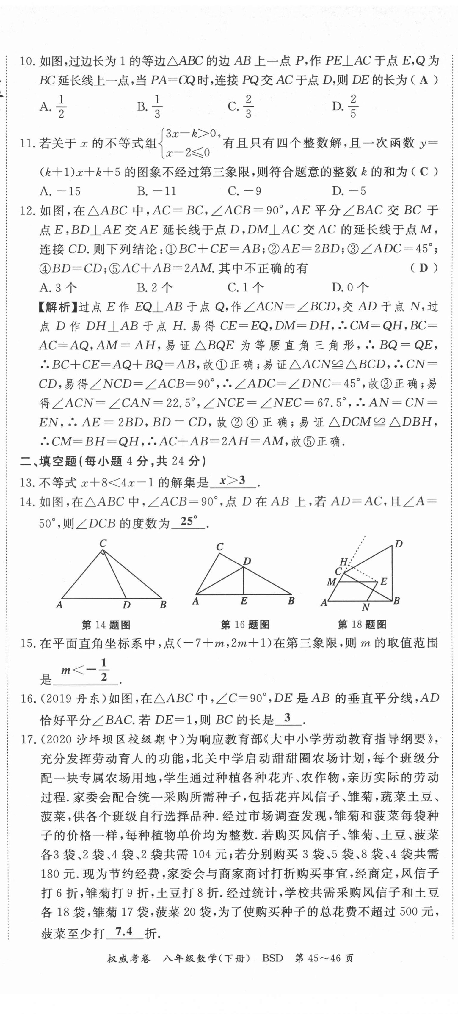 注:目前有些书本章节名称可能整理的还不是很完善,但都是按照顺序排列的,请同学们按照顺序仔细查找。练习册 2021年权威考卷八年级数学下册北师大版 答案主要是用来给同学们做完题方便对答案用的,请勿直接抄袭。
