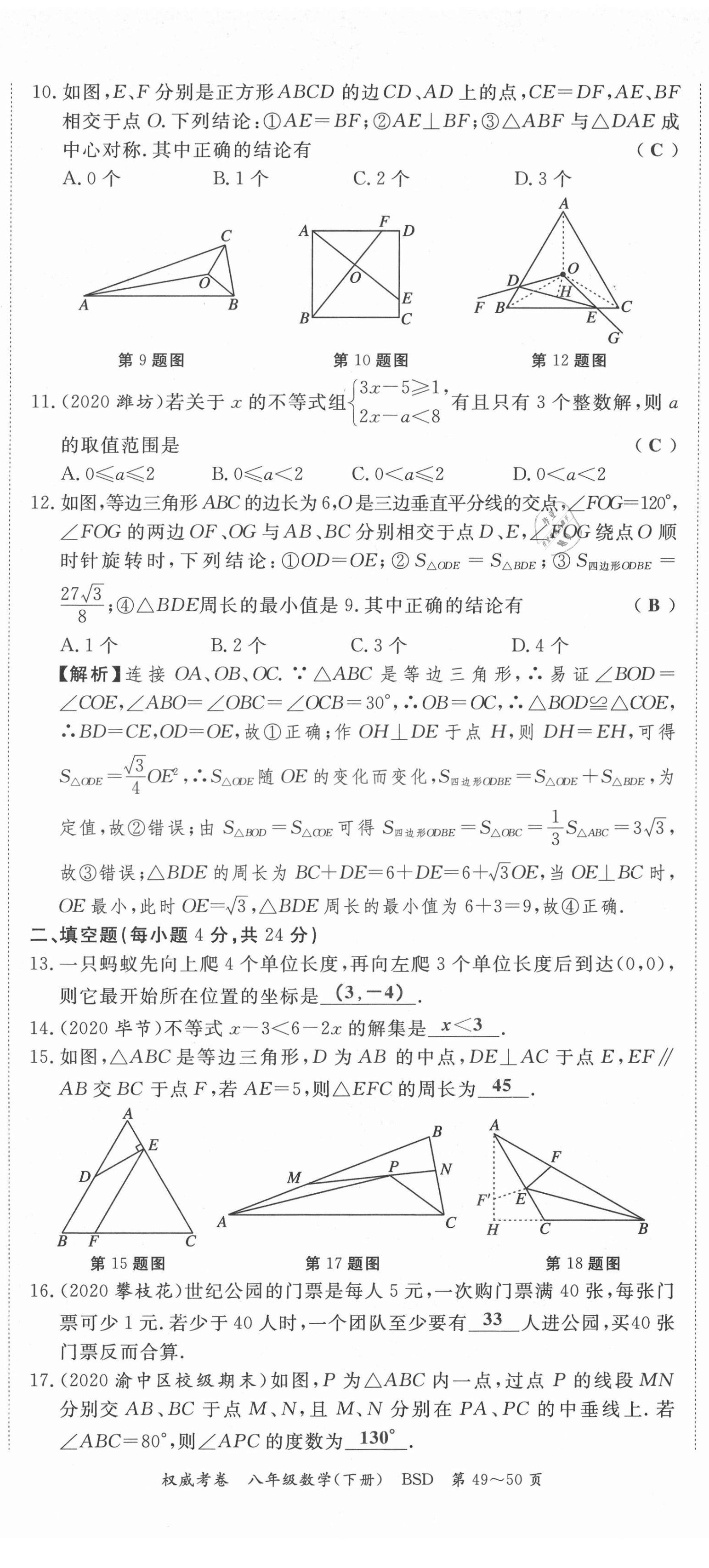 注:目前有些书本章节名称可能整理的还不是很完善,但都是按照顺序排列的,请同学们按照顺序仔细查找。练习册 2021年权威考卷八年级数学下册北师大版 答案主要是用来给同学们做完题方便对答案用的,请勿直接抄袭。