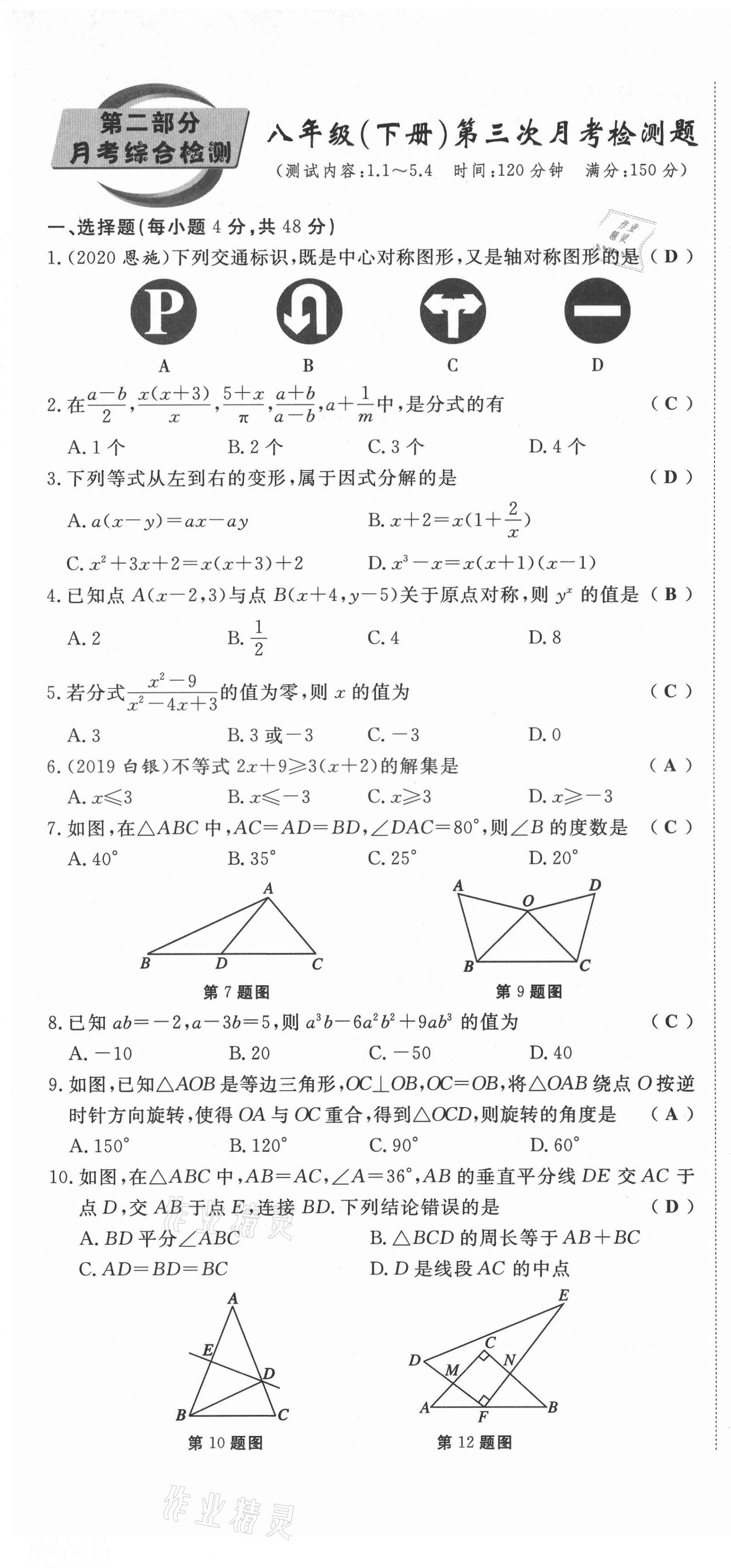 注:目前有些书本章节名称可能整理的还不是很完善,但都是按照顺序排列的,请同学们按照顺序仔细查找。练习册 2021年权威考卷八年级数学下册北师大版 答案主要是用来给同学们做完题方便对答案用的,请勿直接抄袭。
