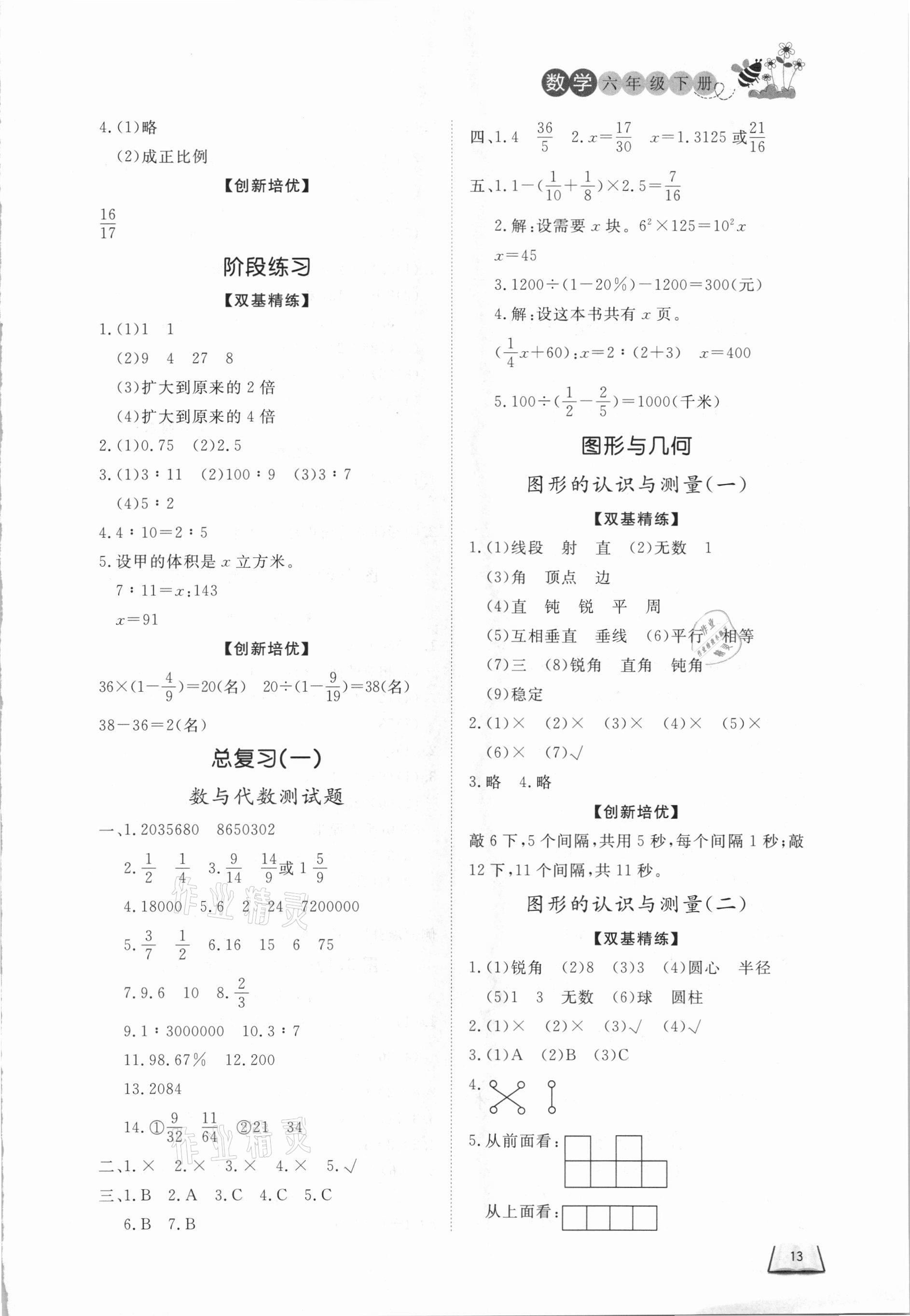 注:目前有些书本章节名称可能整理的还不是很完善,但都是按照顺序排列的,请同学们按照顺序仔细查找。练习册 2021年小学课外作业六年级数学下册人教版 答案主要是用来给同学们做完题方便对答案用的,请勿直接抄袭。