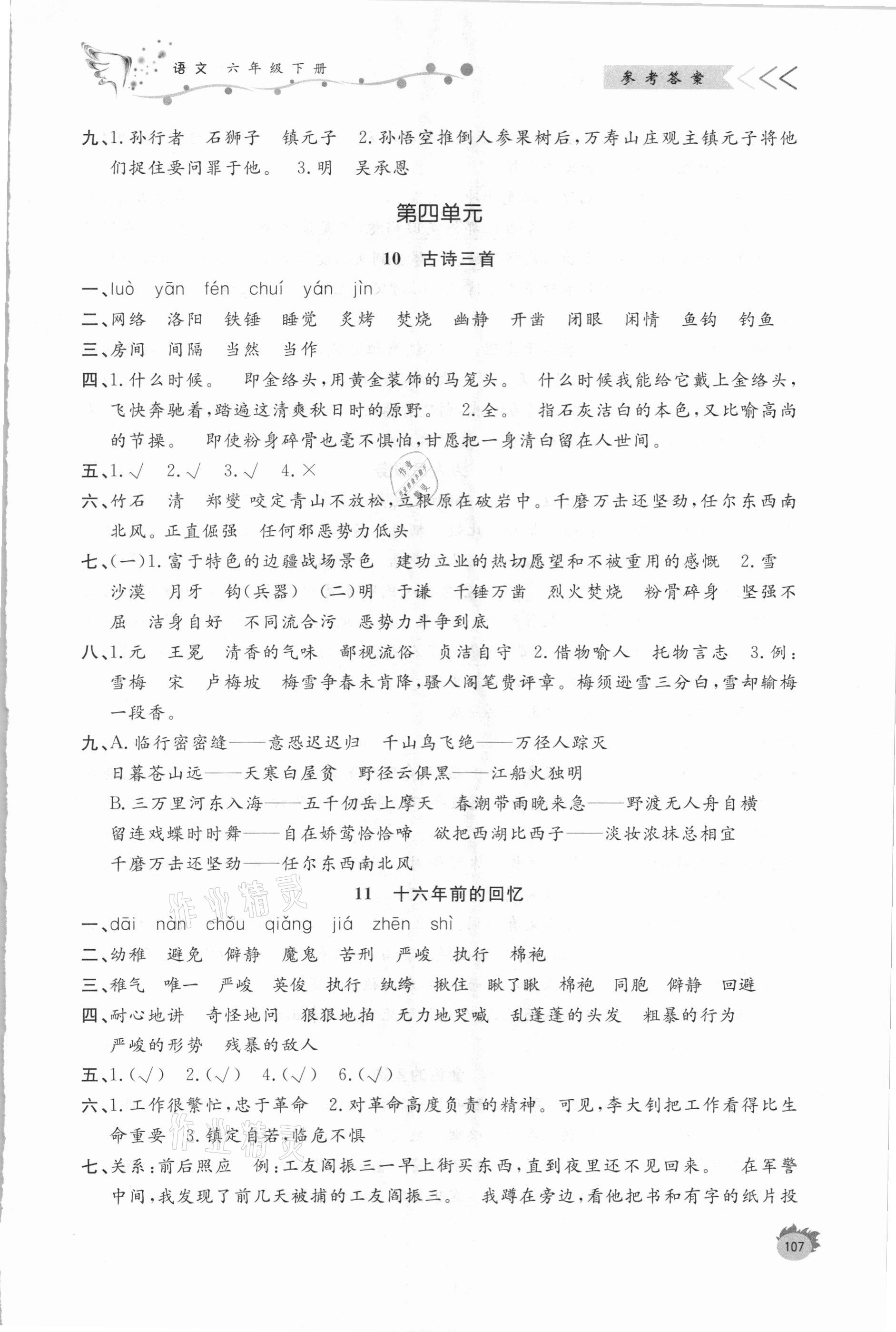 注:目前有些书本章节名称可能整理的还不是很完善,但都是按照顺序排列的,请同学们按照顺序仔细查找。练习册 2021年课外作业六年级语文下册人教版 答案主要是用来给同学们做完题方便对答案用的,请勿直接抄袭。