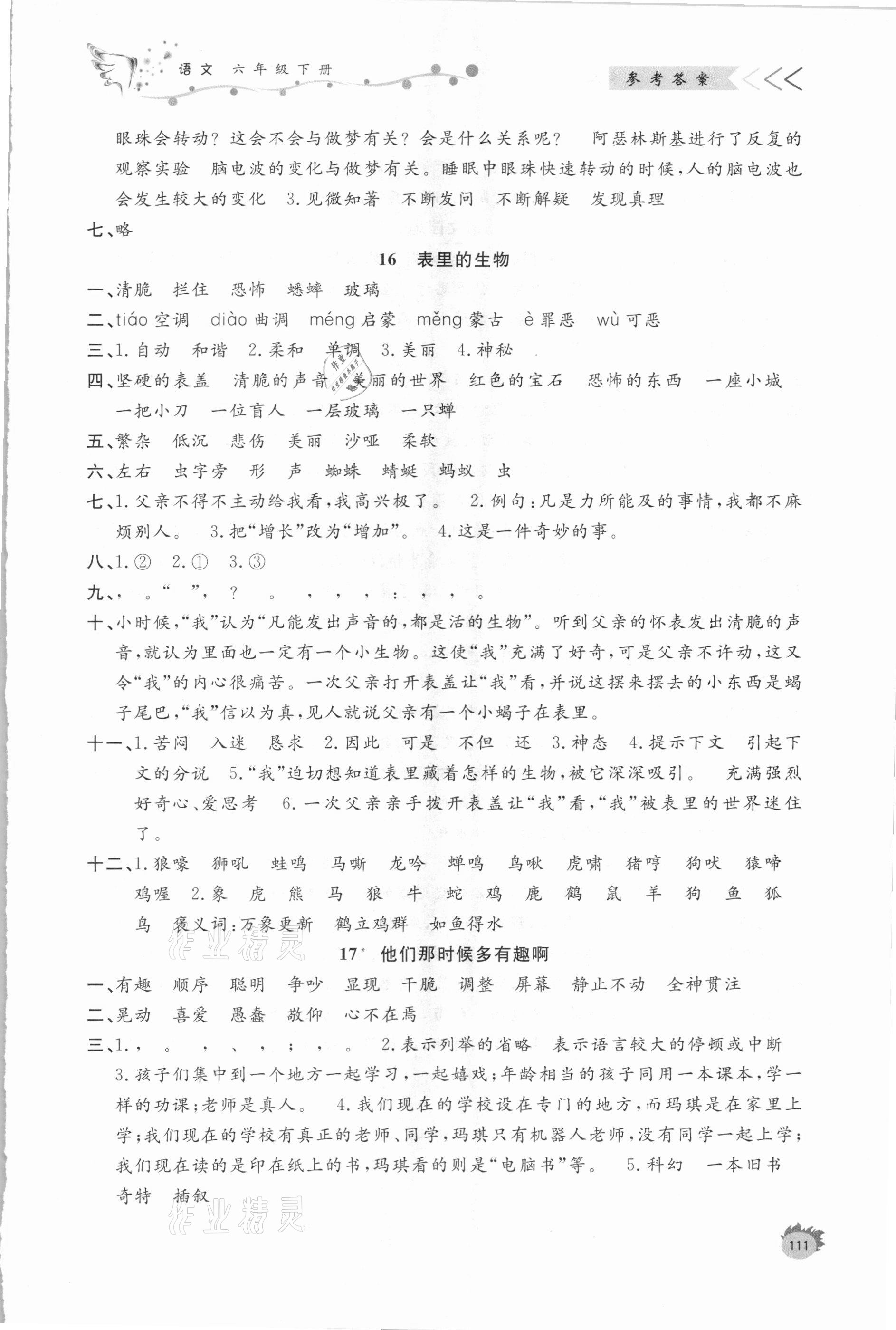 注:目前有些书本章节名称可能整理的还不是很完善,但都是按照顺序排列的,请同学们按照顺序仔细查找。练习册 2021年课外作业六年级语文下册人教版 答案主要是用来给同学们做完题方便对答案用的,请勿直接抄袭。