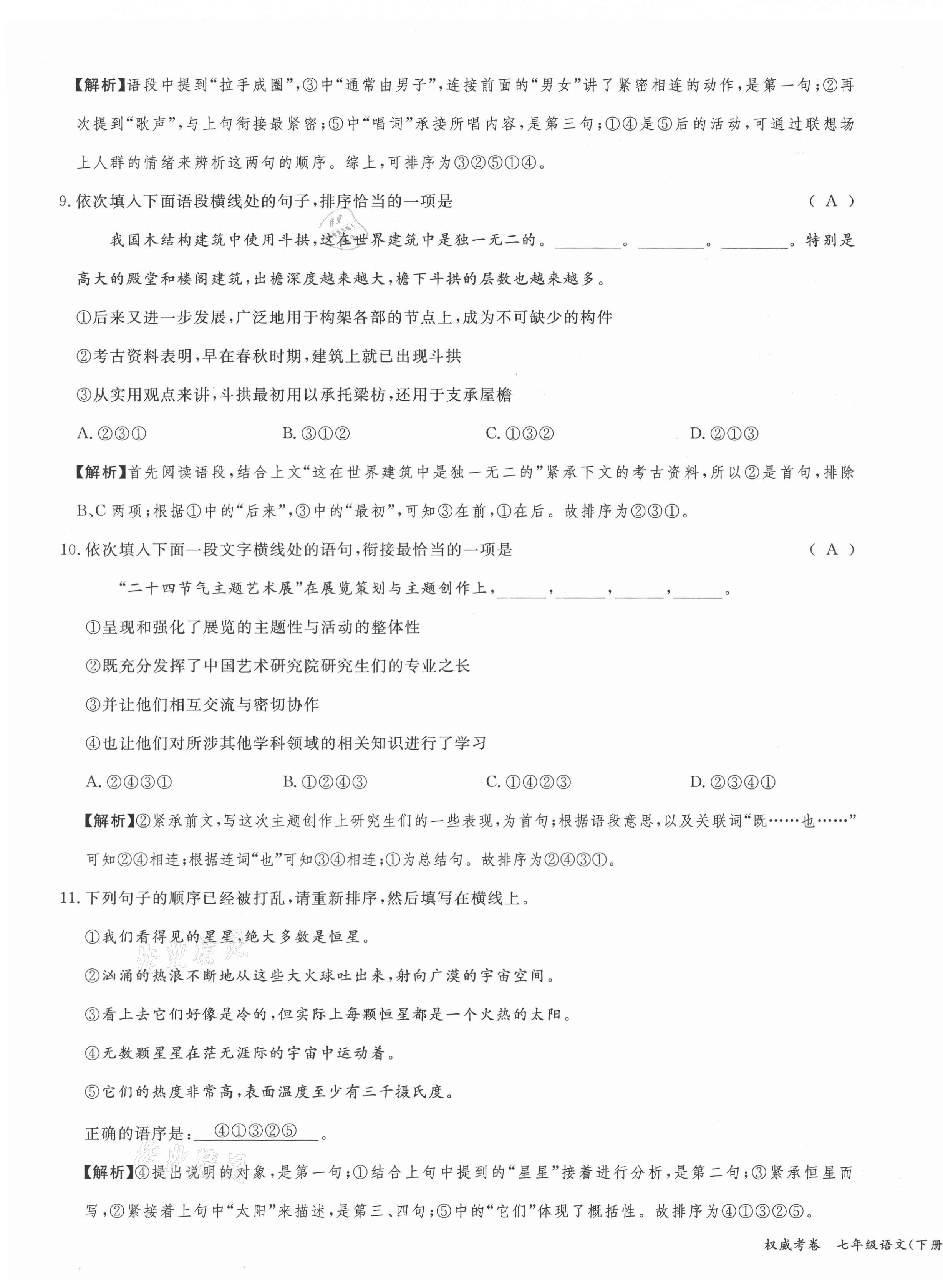 注:目前有些书本章节名称可能整理的还不是很完善,但都是按照顺序排列的,请同学们按照顺序仔细查找。练习册 2021年权威考卷七年级语文下册人教版 答案主要是用来给同学们做完题方便对答案用的,请勿直接抄袭。