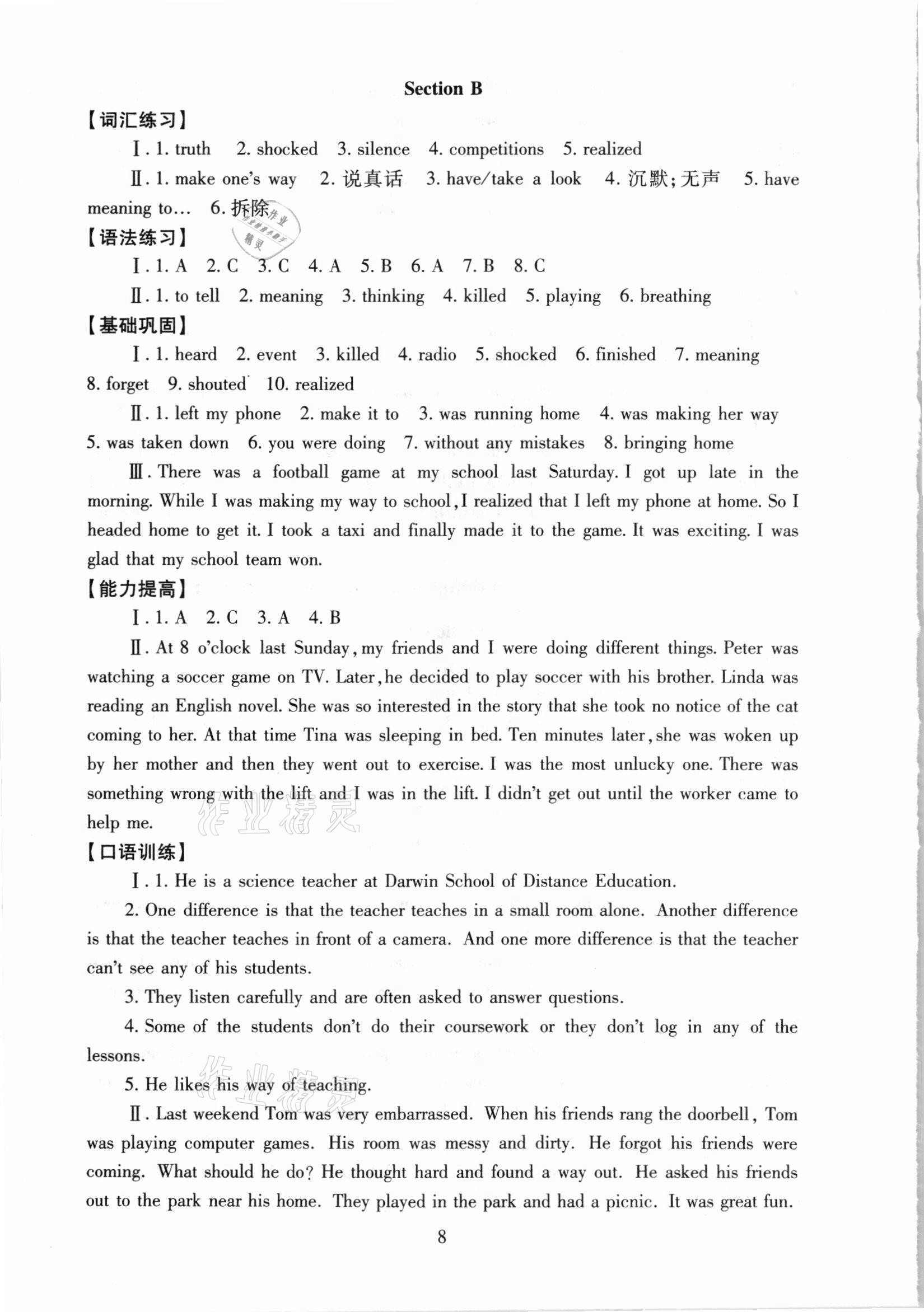 注:目前有些书本章节名称可能整理的还不是很完善,但都是按照顺序排列的,请同学们按照顺序仔细查找。练习册 2021年海淀名师伴你学同步学练测八年级英语下册人教版 答案主要是用来给同学们做完题方便对答案用的,请勿直接抄袭。