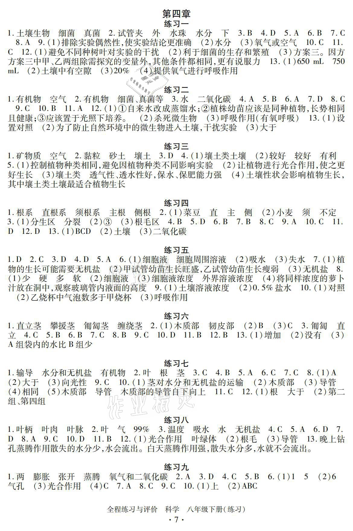 2021年全程练习与评价八年级科学下册浙教版练习版