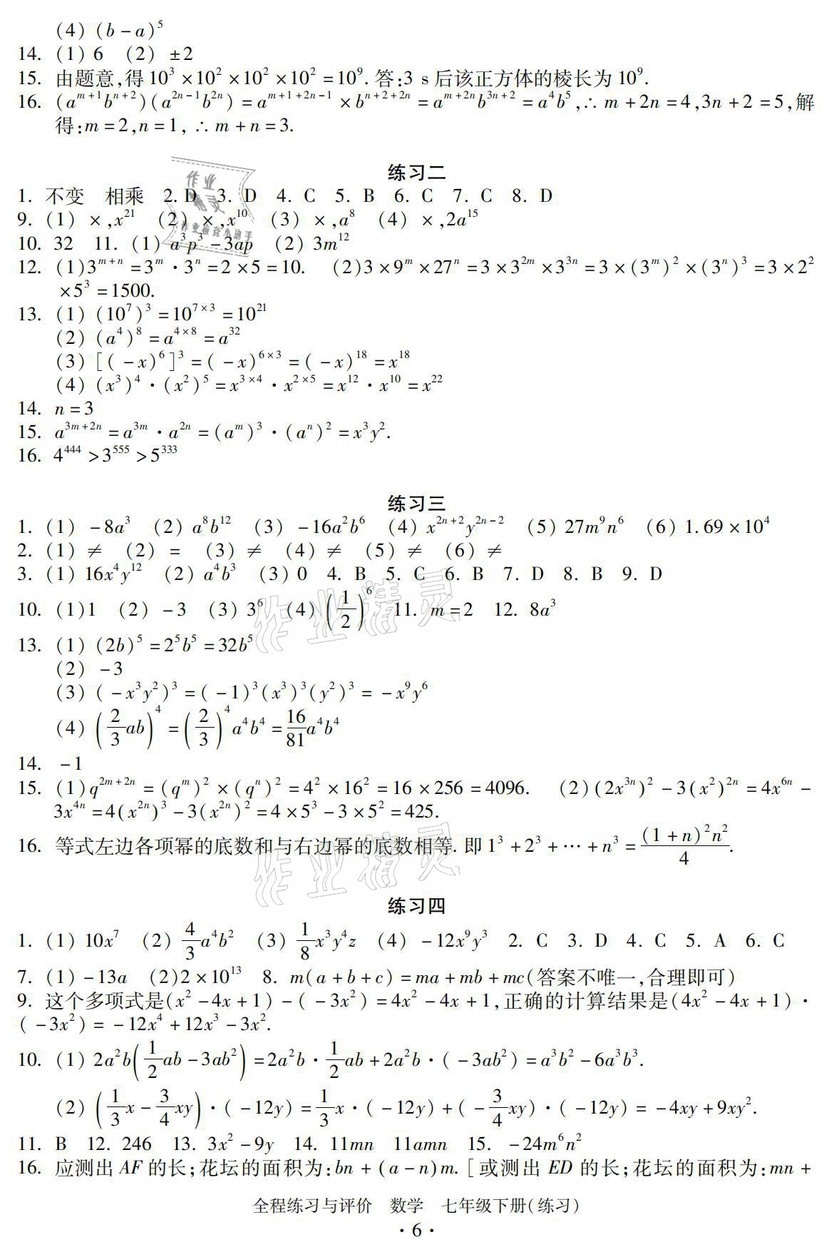 注:目前有些书本章节名称可能整理的还不是很完善,但都是按照顺序排列的,请同学们按照顺序仔细查找。练习册 2021年全程练习与评价七年级数学下册浙教版练习版 答案主要是用来给同学们做完题方便对答案用的,请勿直接抄袭。