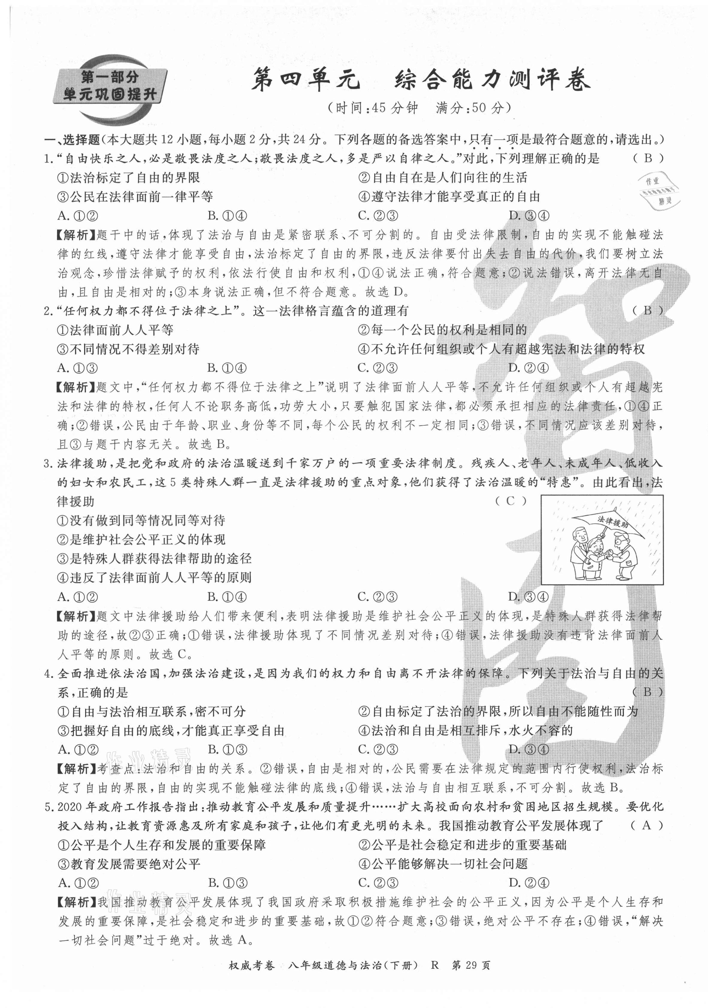 注:目前有些书本章节名称可能整理的还不是很完善,但都是按照顺序排列的,请同学们按照顺序仔细查找。练习册 2021年权威考卷八年级道德与法治下册人教版 答案主要是用来给同学们做完题方便对答案用的,请勿直接抄袭。