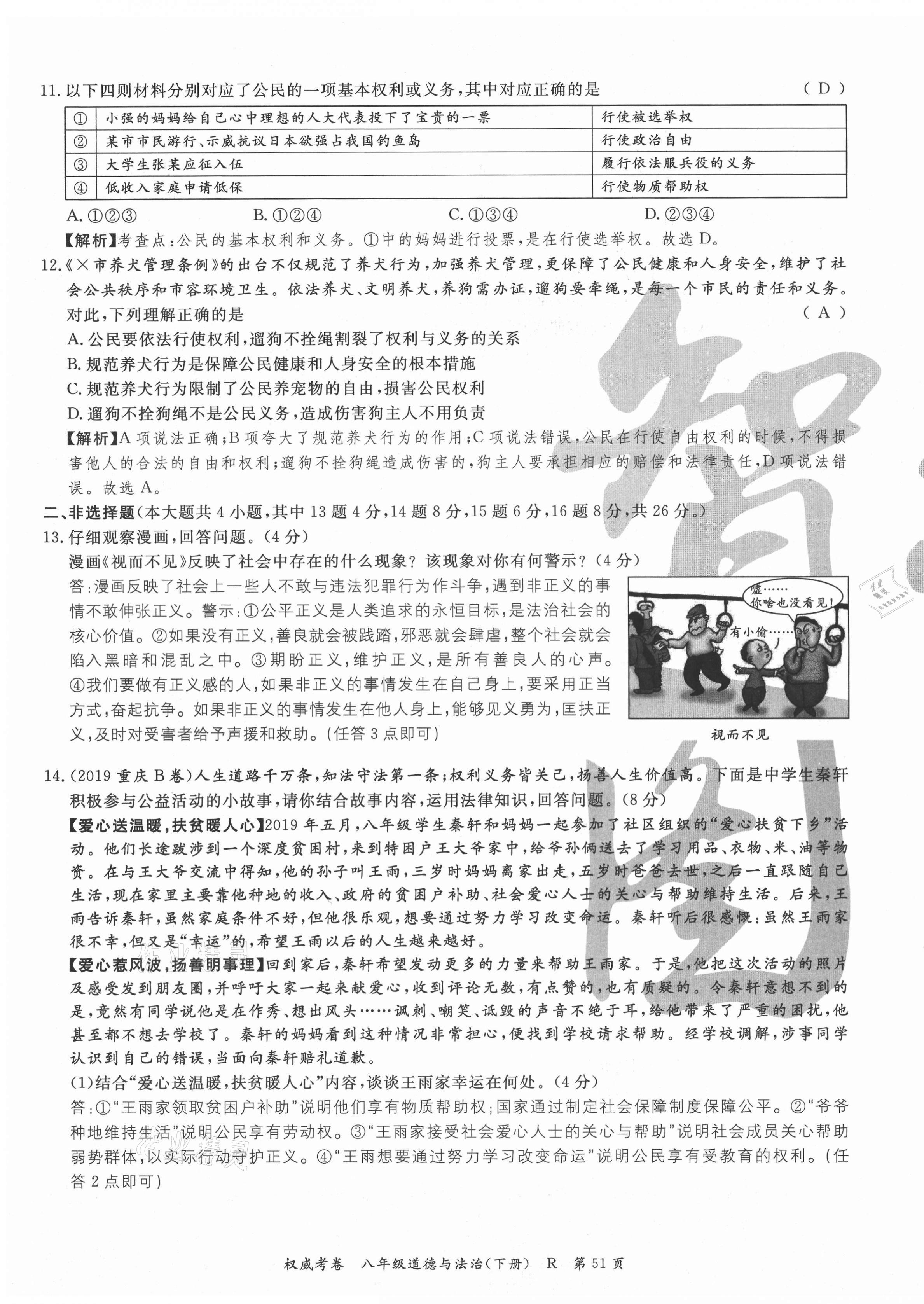 注:目前有些书本章节名称可能整理的还不是很完善,但都是按照顺序排列的,请同学们按照顺序仔细查找。练习册 2021年权威考卷八年级道德与法治下册人教版 答案主要是用来给同学们做完题方便对答案用的,请勿直接抄袭。