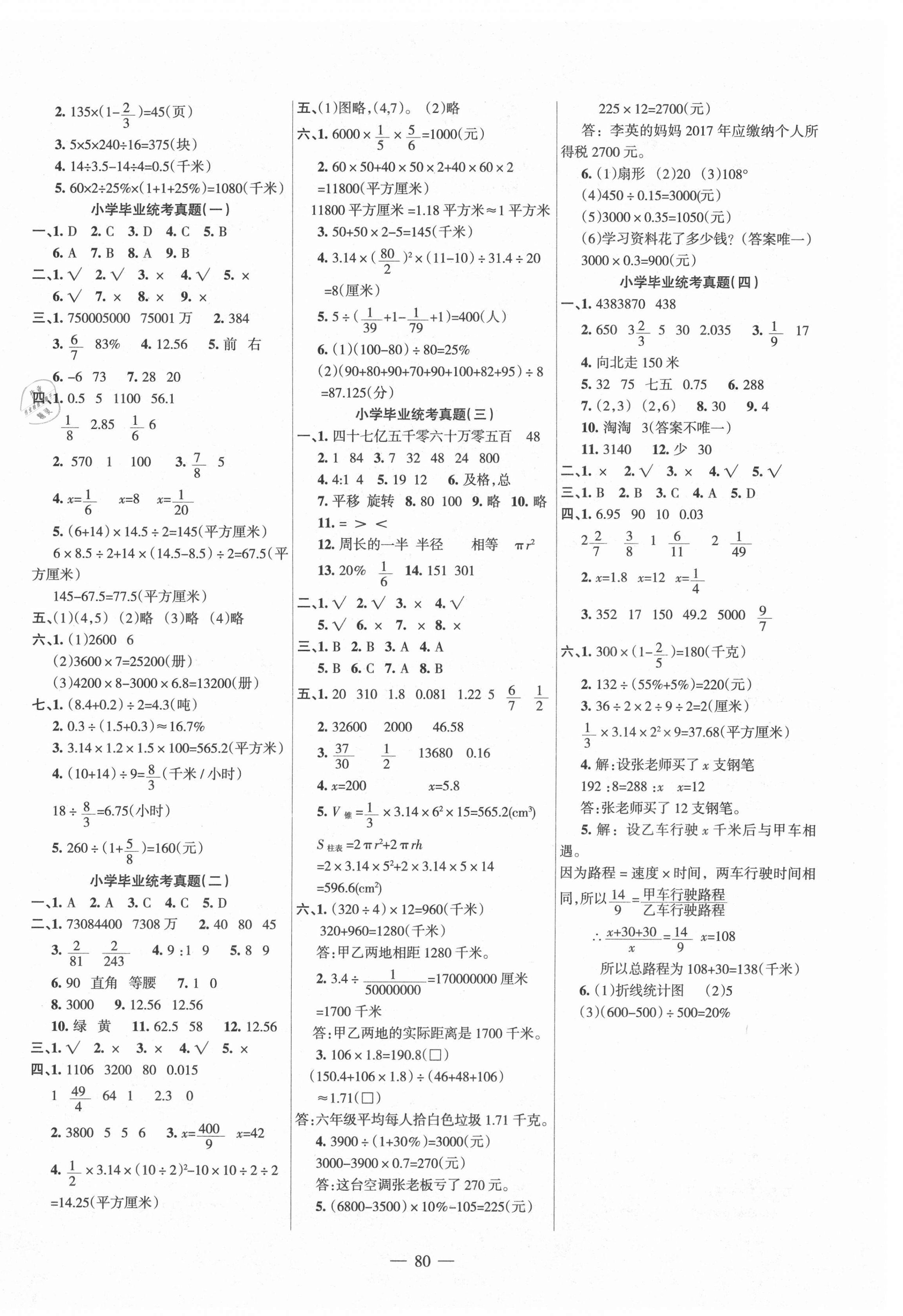 2021年金钥匙期末冲刺100分六年级数学下册人教版