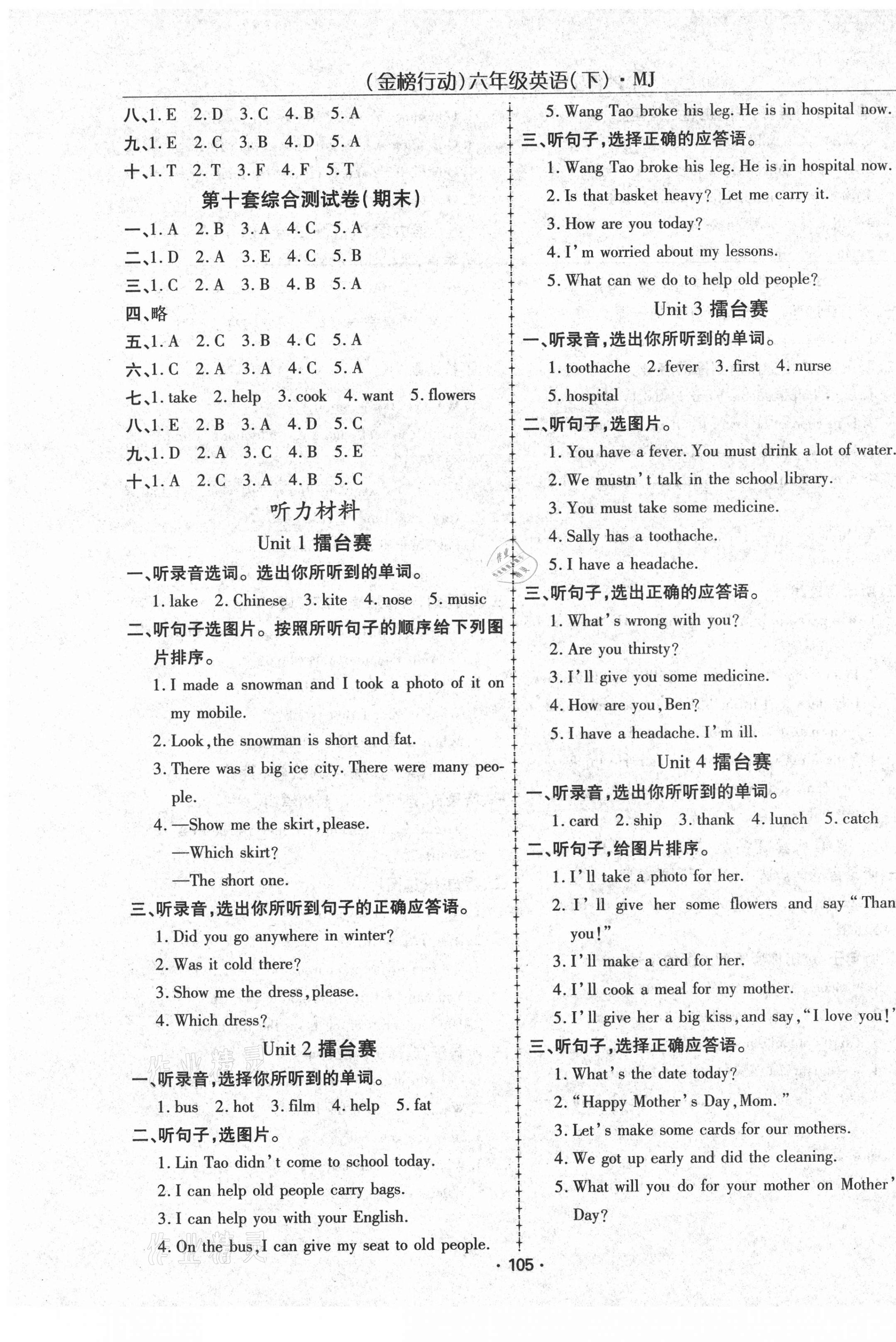 2021年金榜行动六年级英语下册闽教版新疆文化出版社